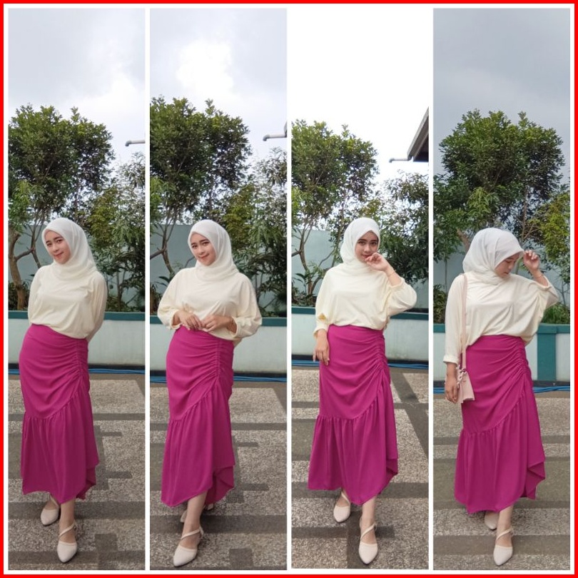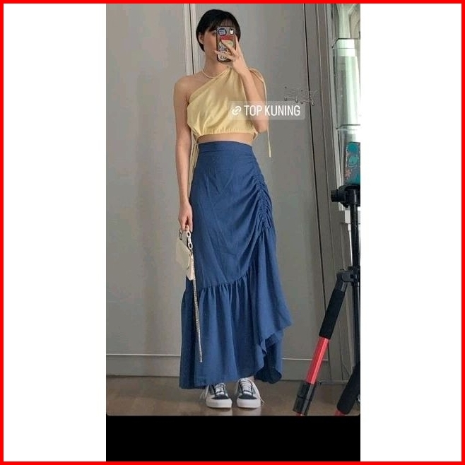 Himawari Korean Skirt Simple Rok Serut High Waist Dengan Resleting Tersedia Dari Ukuran S Sampai Xl I Rok Span Serut Cas
