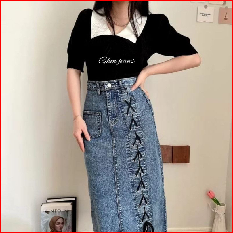 Rok Nikita Skirt - Rok Jeans Wanita Premium - Rok Panjang Jeans Wanita