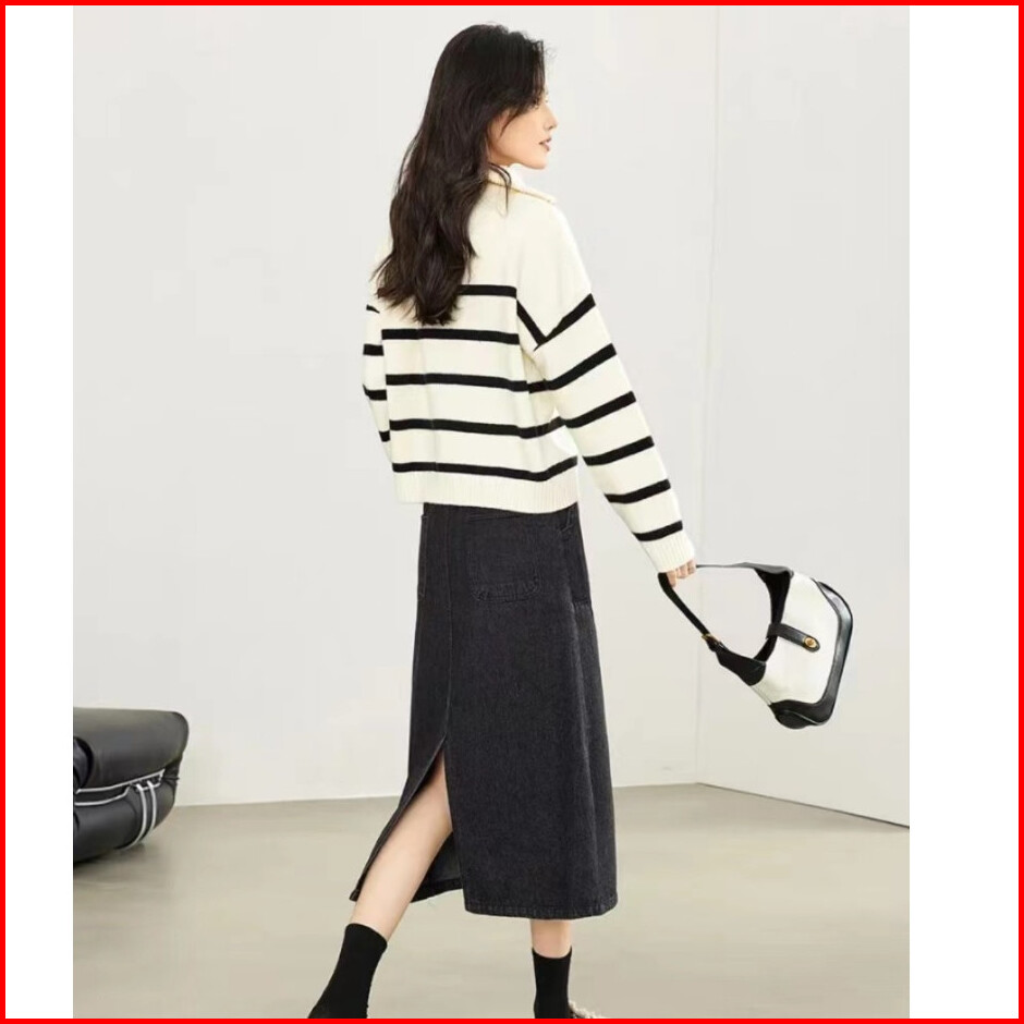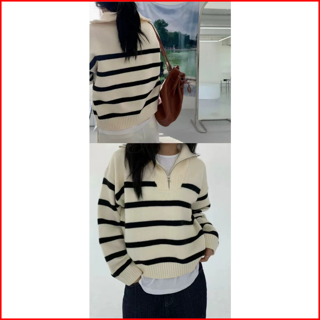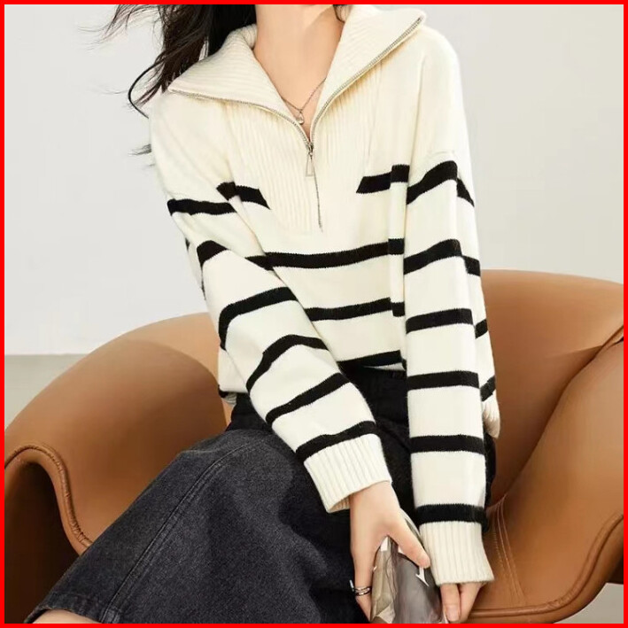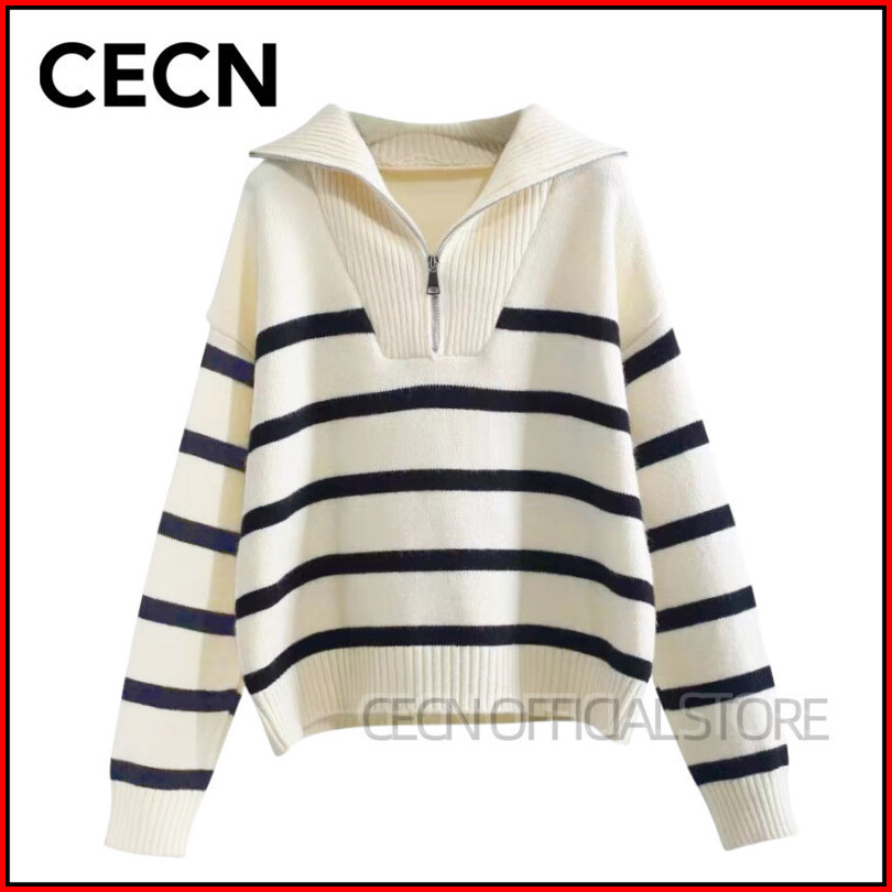 Cecn Sweater Polo Casual Sweater Zipper Baggy Fit Rajut Wol Atasan Sweater Wanita