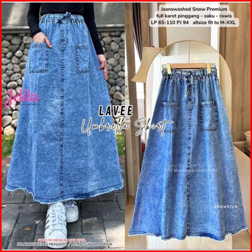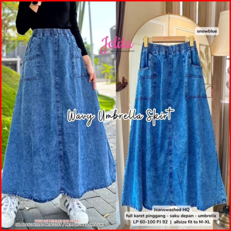Rok Kantong Wanita Rok Jeans Pinggang Karet Highwaist