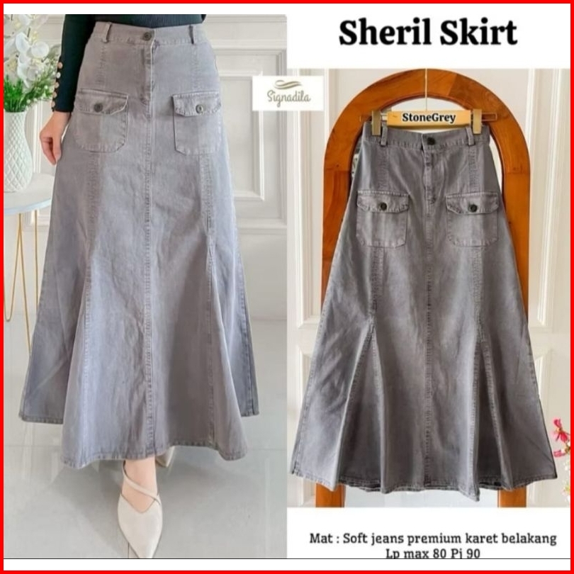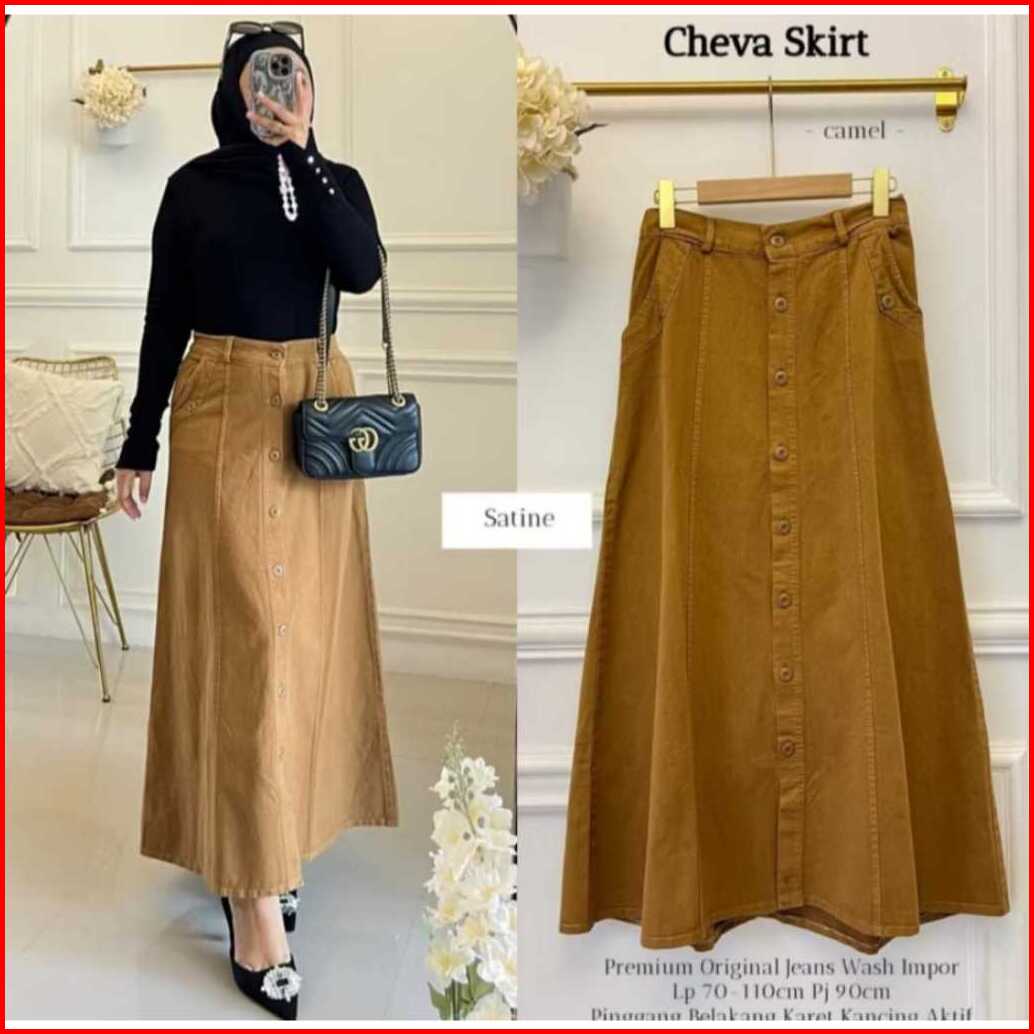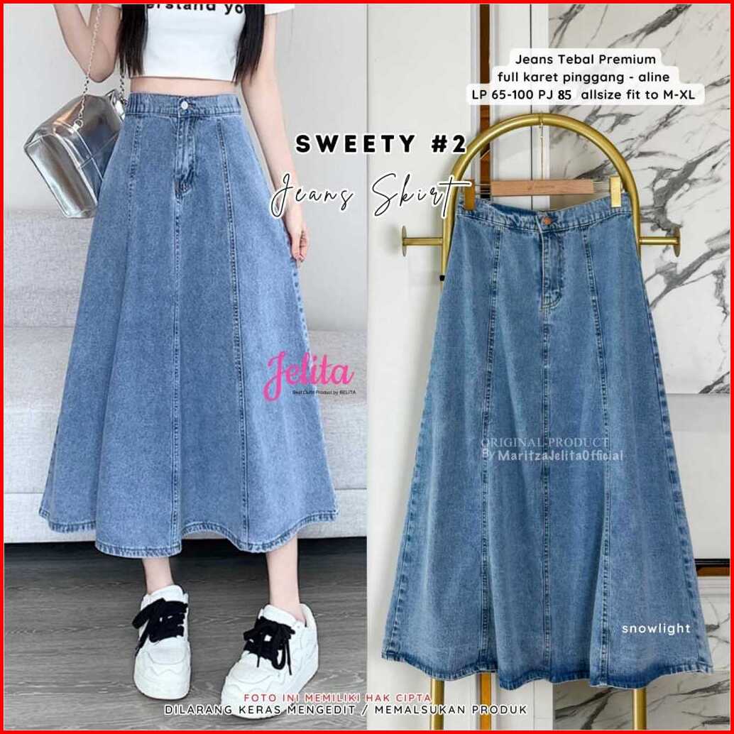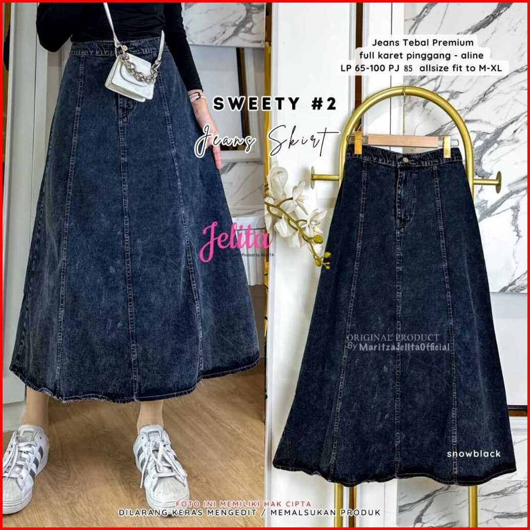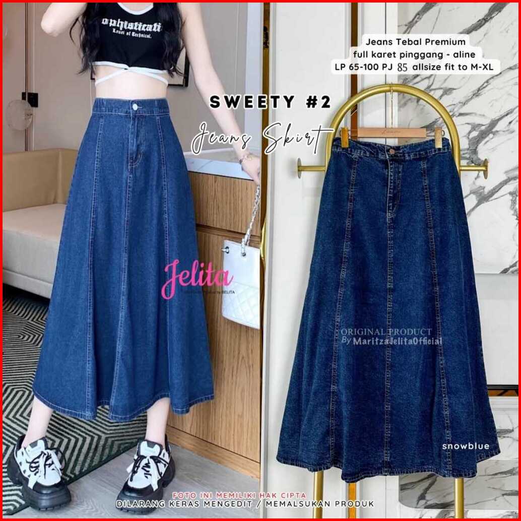 Sweety 2 Skirt Rok Panjang Jeans Denim Wanita Semi A-line