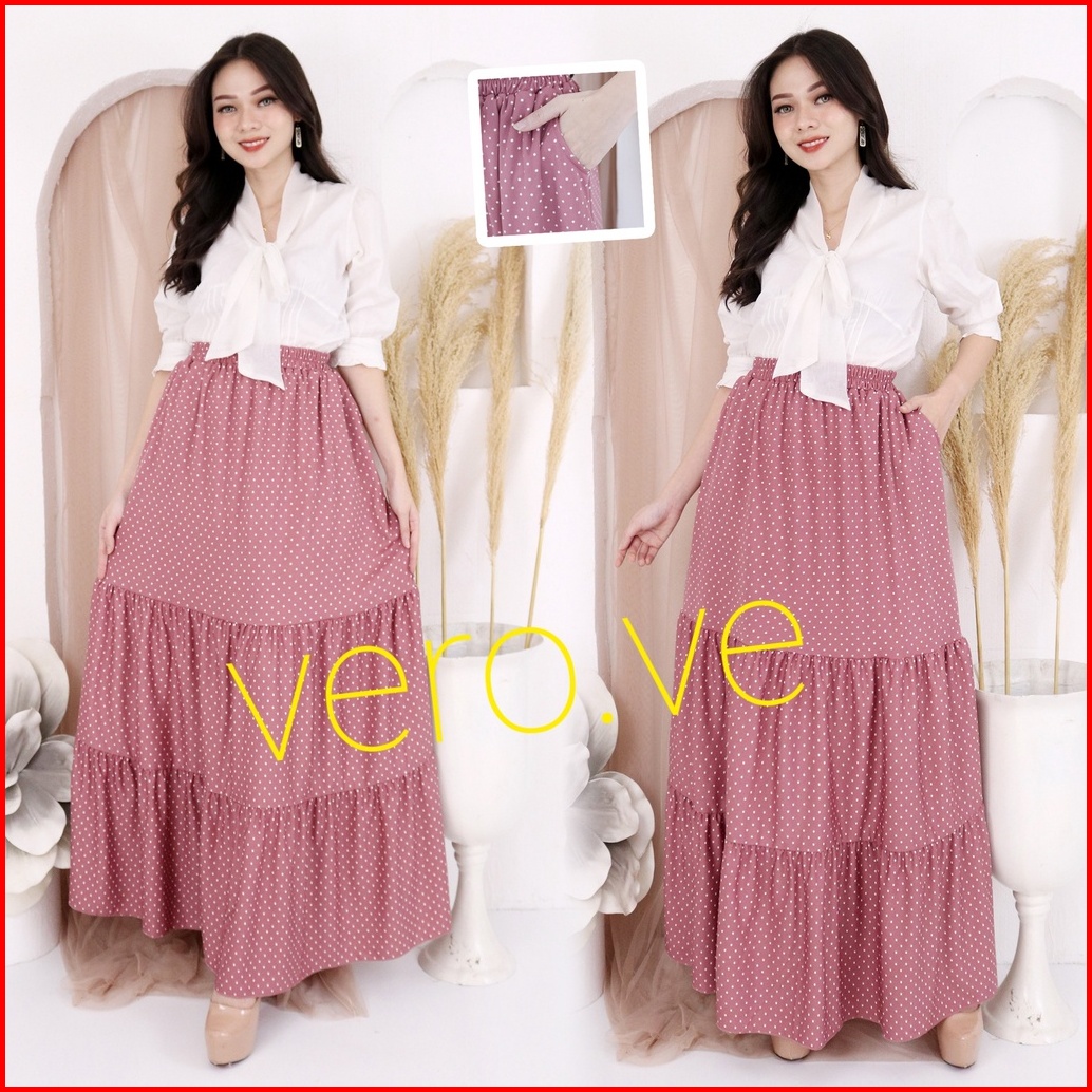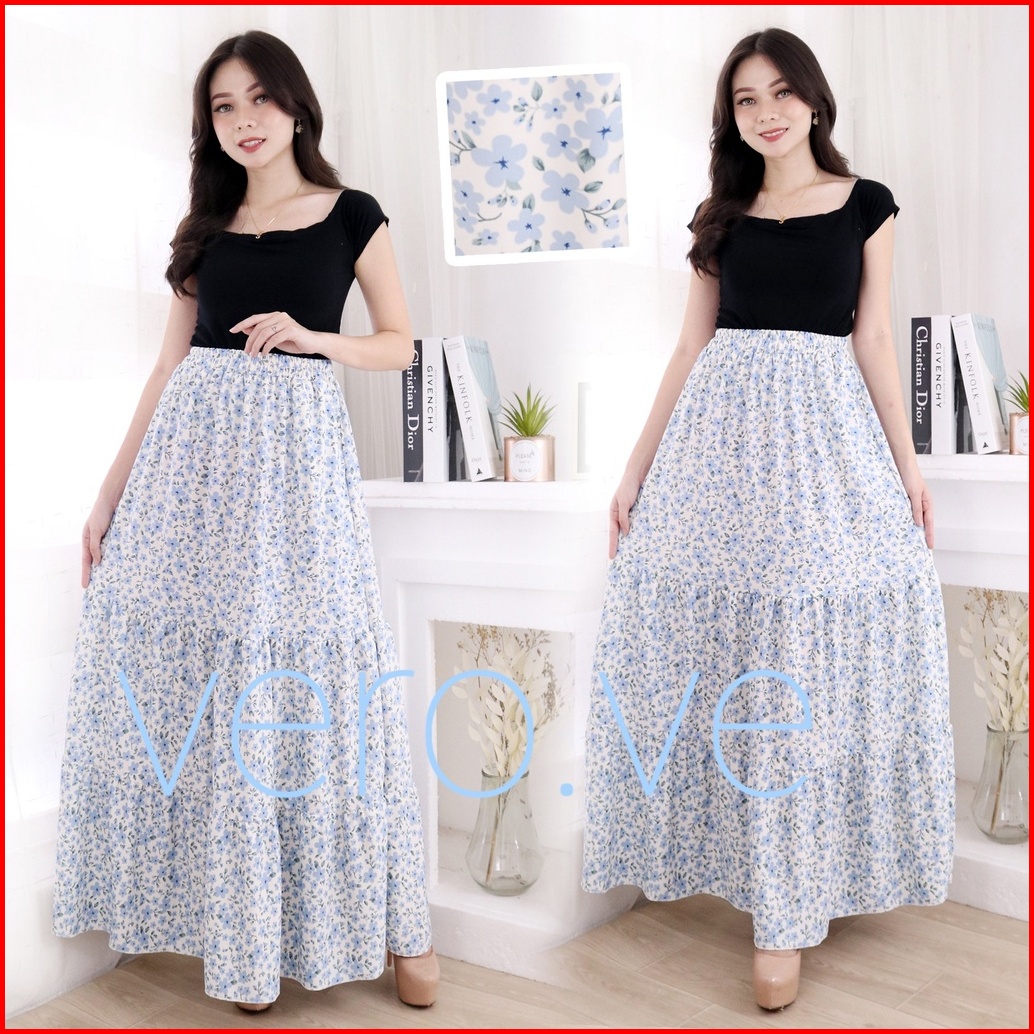 Rok Panjang Corak Motif Rok Muslim Mayung Longgar Payung Susun Jumbo Kerutan Bawahan Terbaru Termurah Terlaris