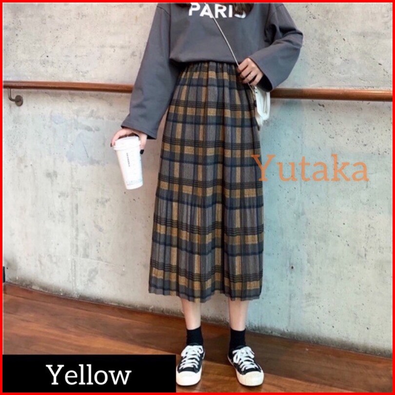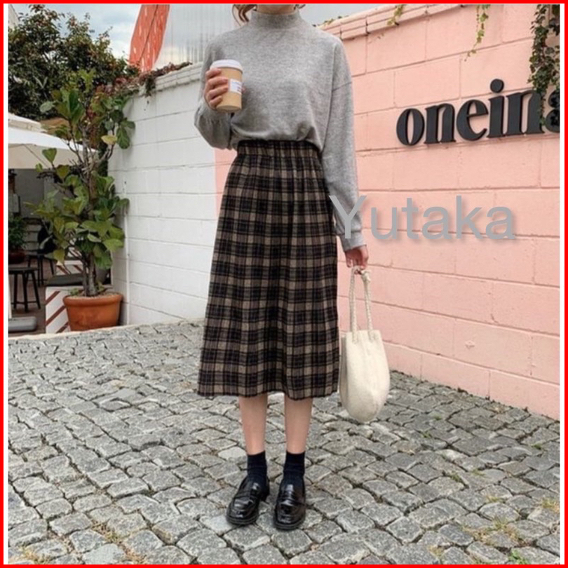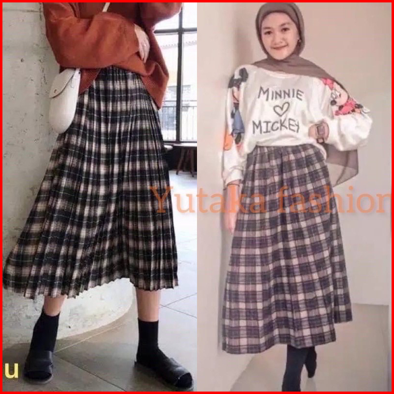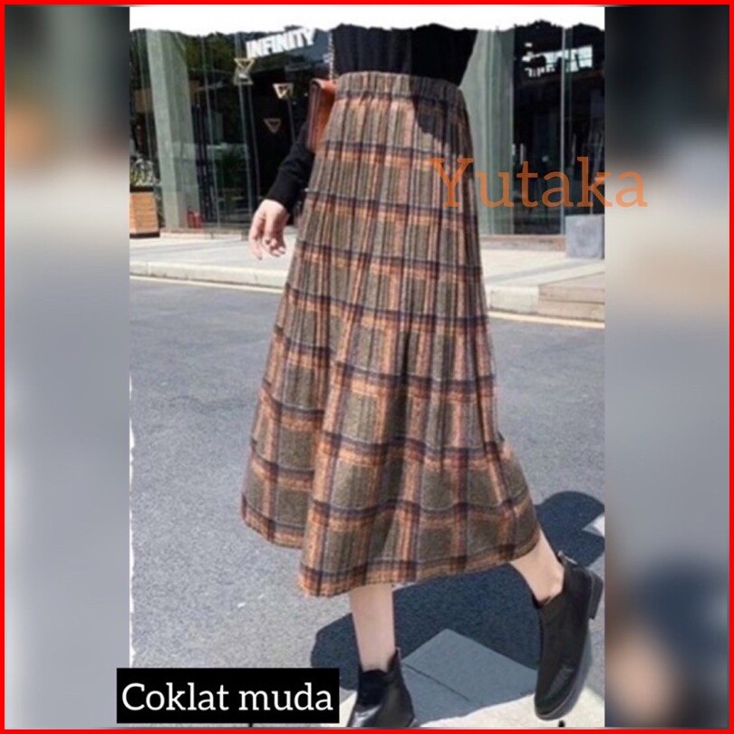 Rok Midi Plisket Kotak Import Rok Korean Premium Rok Lebar