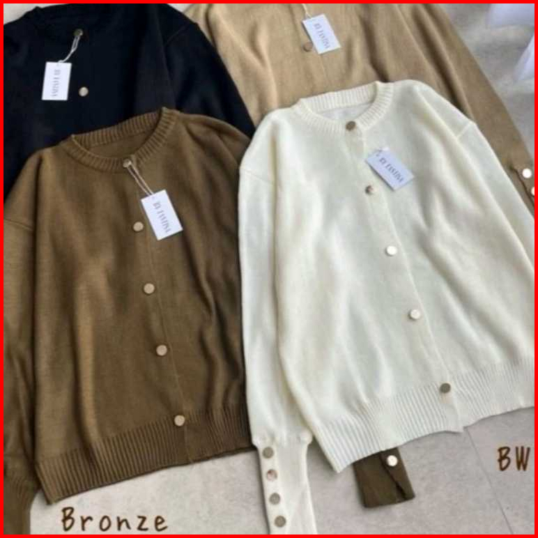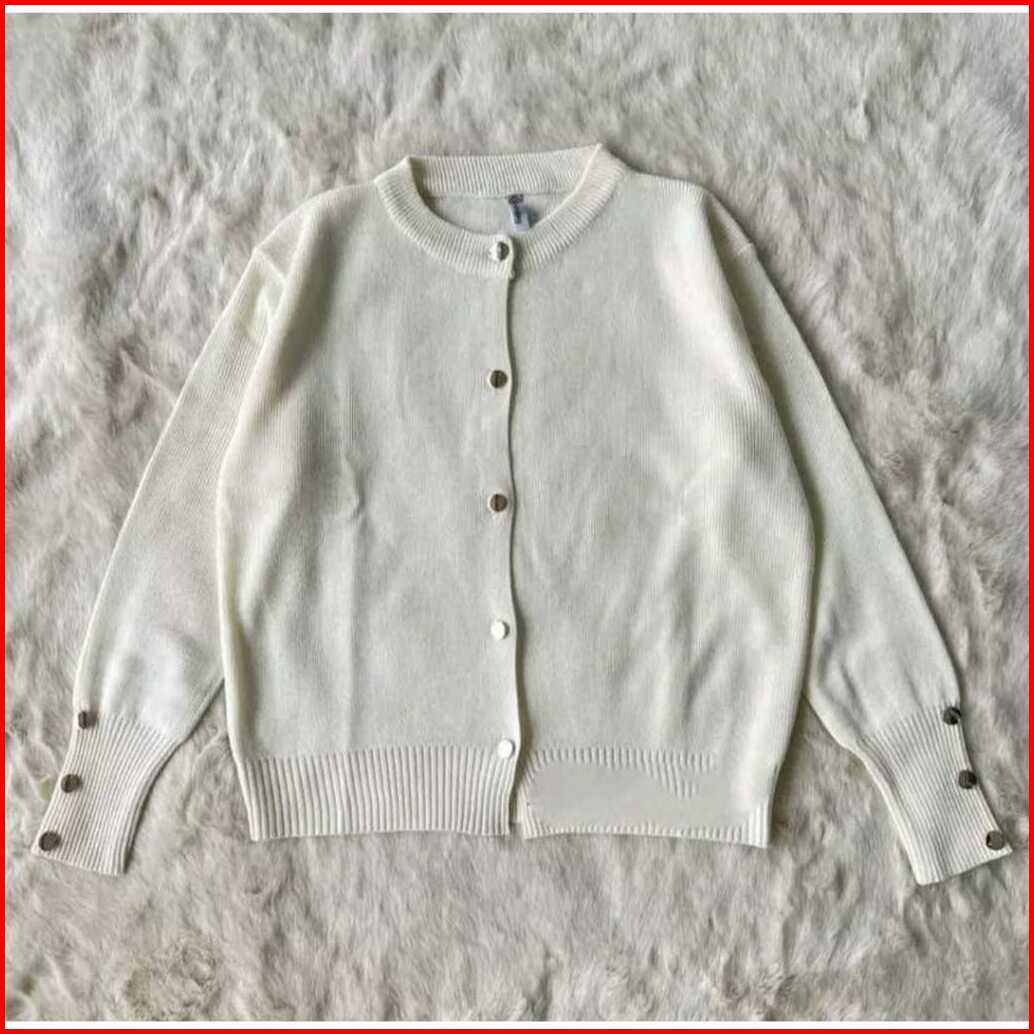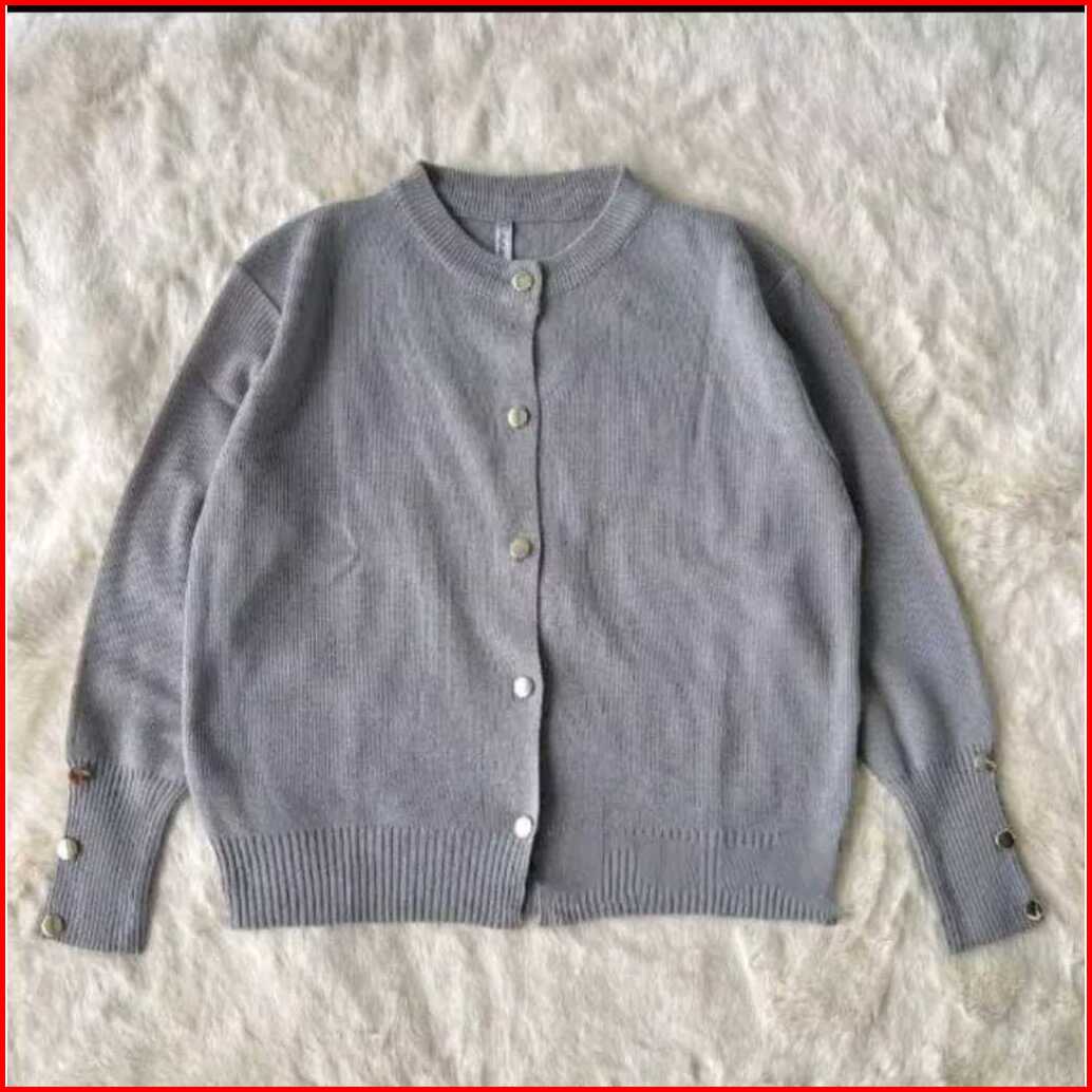 Cardigan Rajut Wanita Cardigan Rajut Starla Basic Kancing Silver-