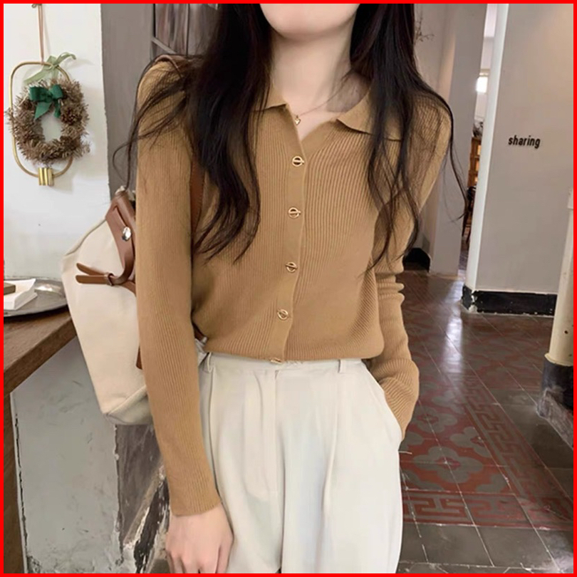 Top Women Knit Sleeve Long Lengan Panjang Atasan Wanita Rajut Mx115
