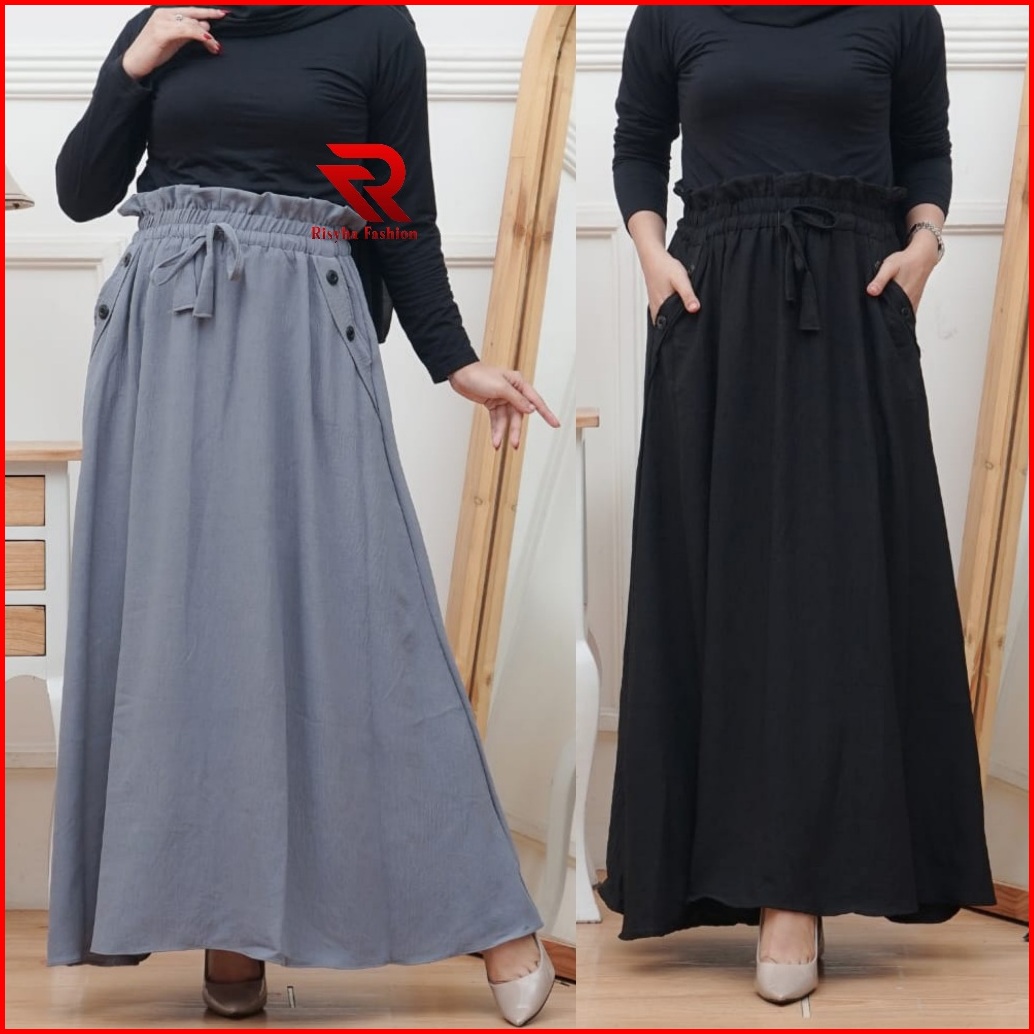 Risyha Fashion - Rok Mayung Panjang Loose Maxi Long Skirt Flare Payung Over All Size Model Kawai Kiyowo Japan Korean Sty