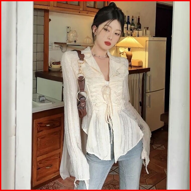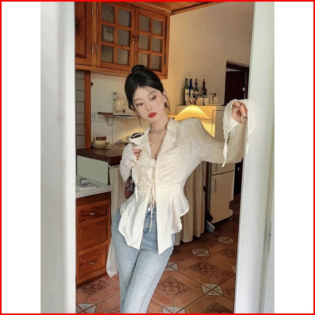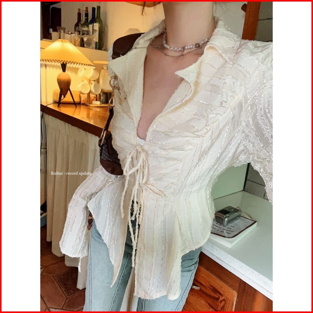Ready Yahao- Kemeja Pelindung Sinar Matahari Sifon Aprikot Untuk Wanita Musim Semi Dan Musim Gugur Kemeja Lengan Panjang