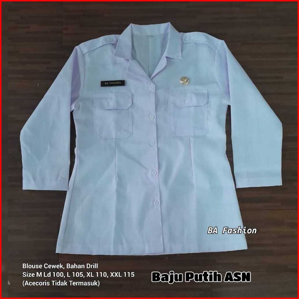 Blus Kemeja Pdh Putih Wanita Lengan Panjang Seragam Guru Blus Pppk Baju Wanita Asn Putih