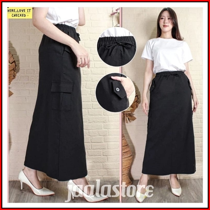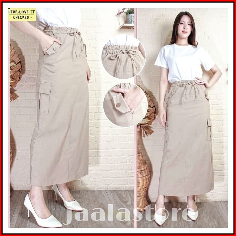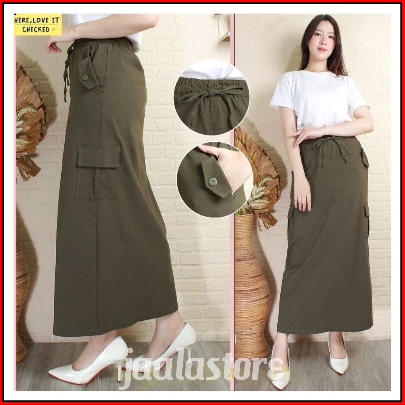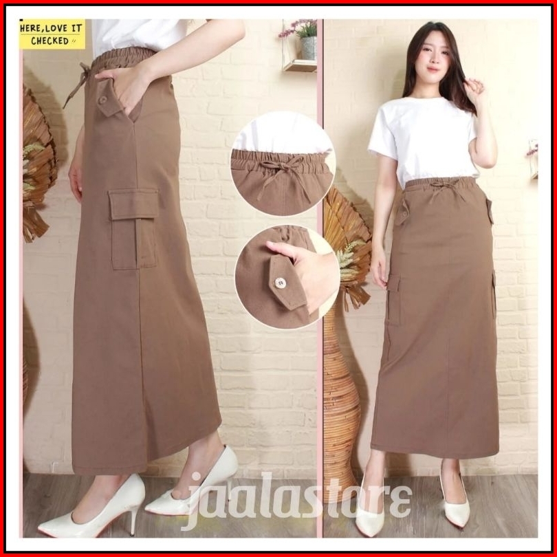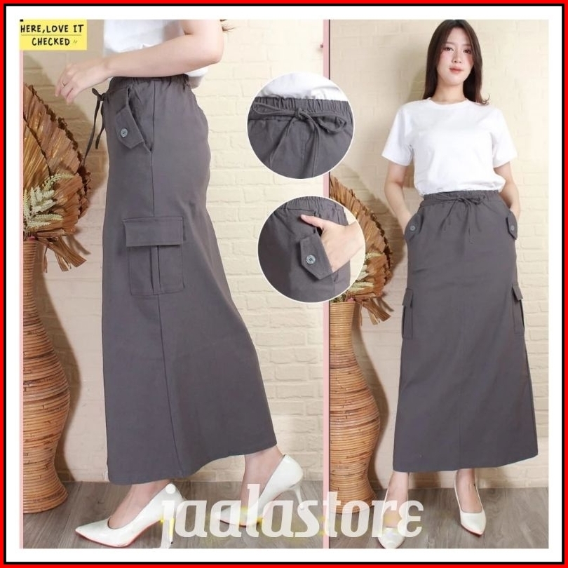 Rok Cargo Wanita Rok Panjang Cargo Premium Bahan Cotton Combet Tebal Adem