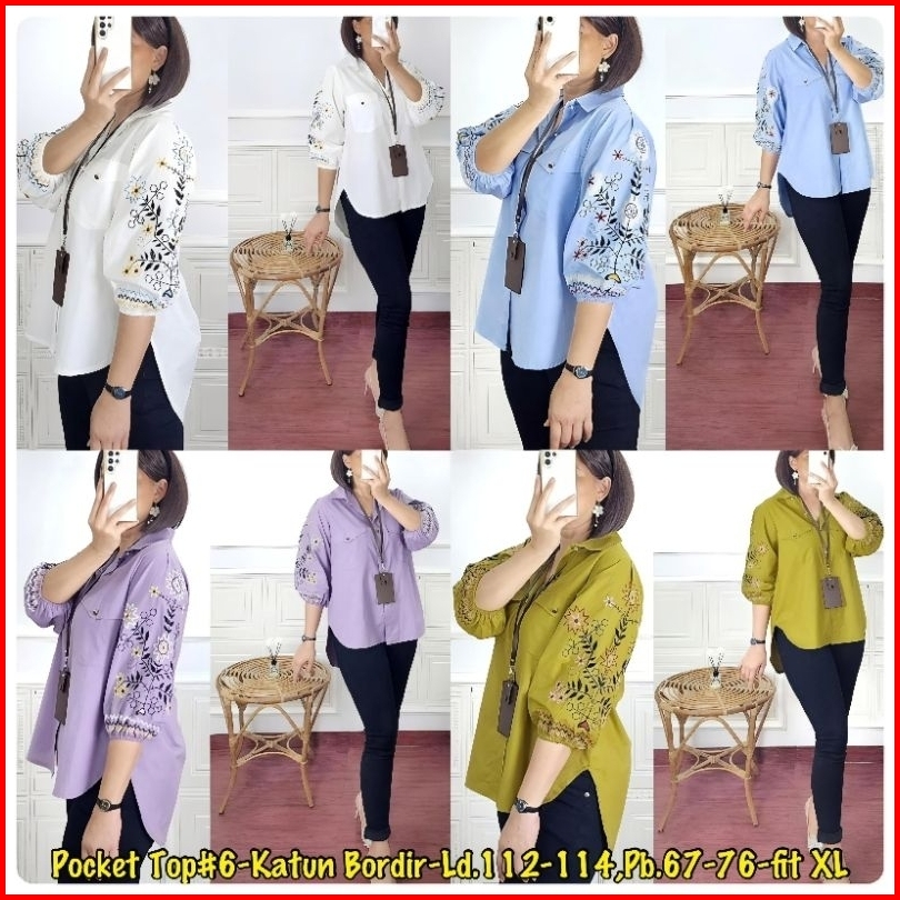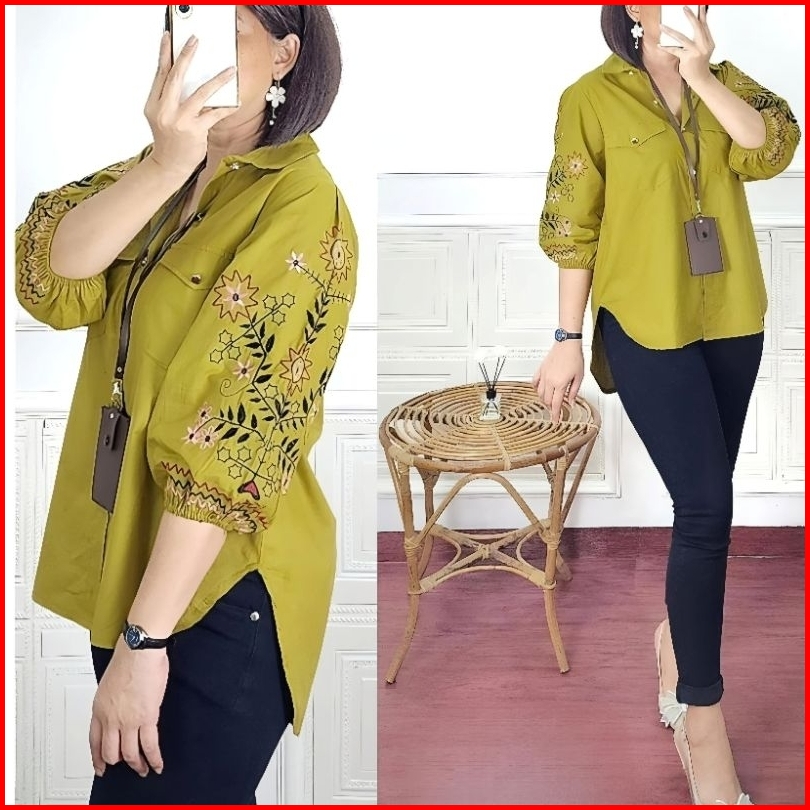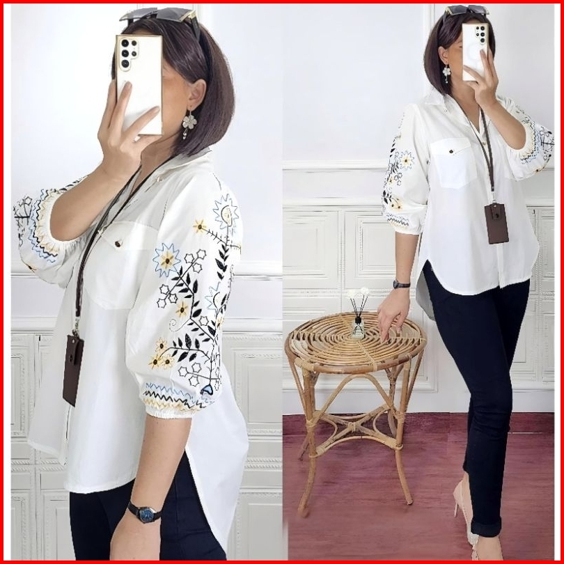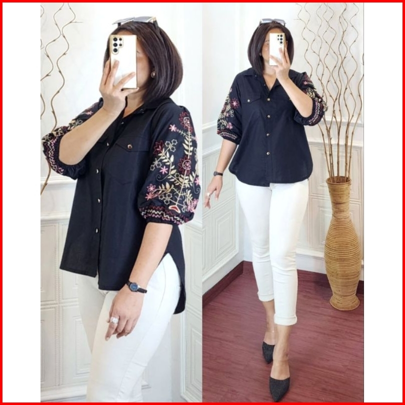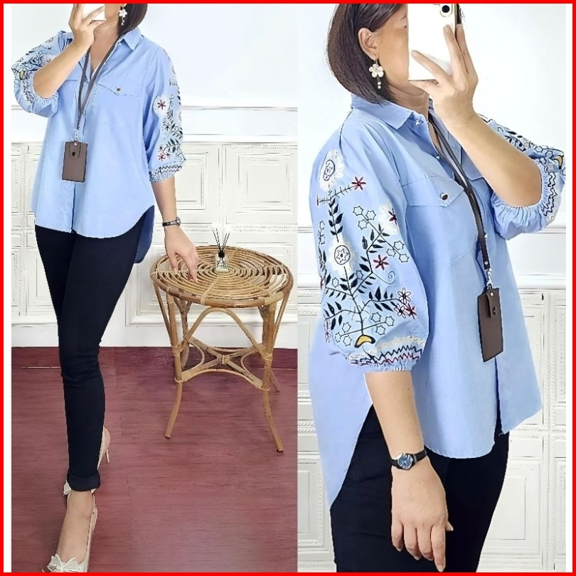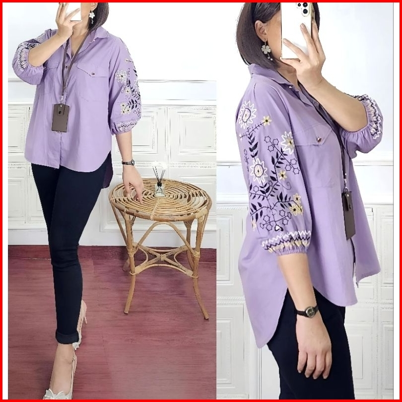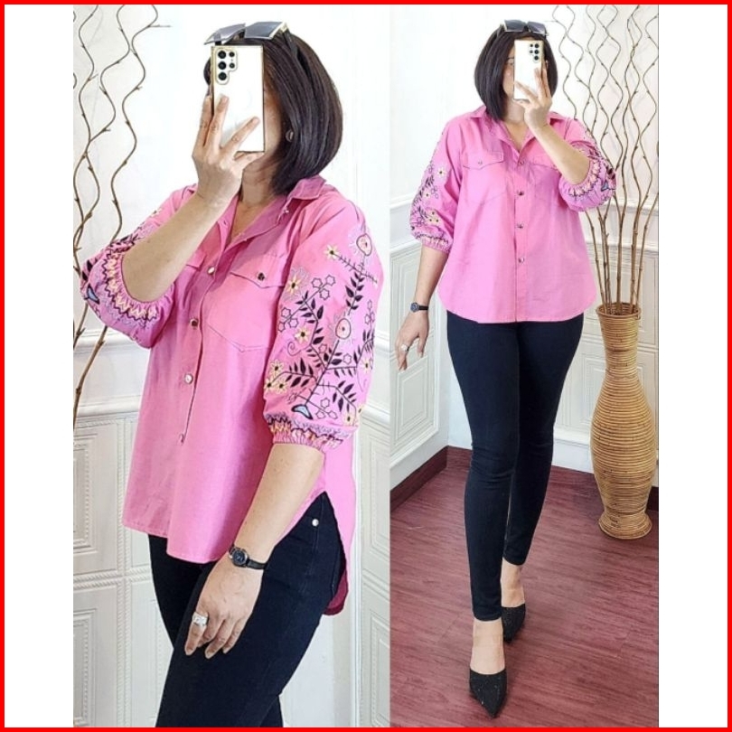 Kemeja Wanita Ld 112cm Sunkristal Bordir Katun