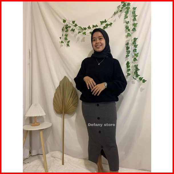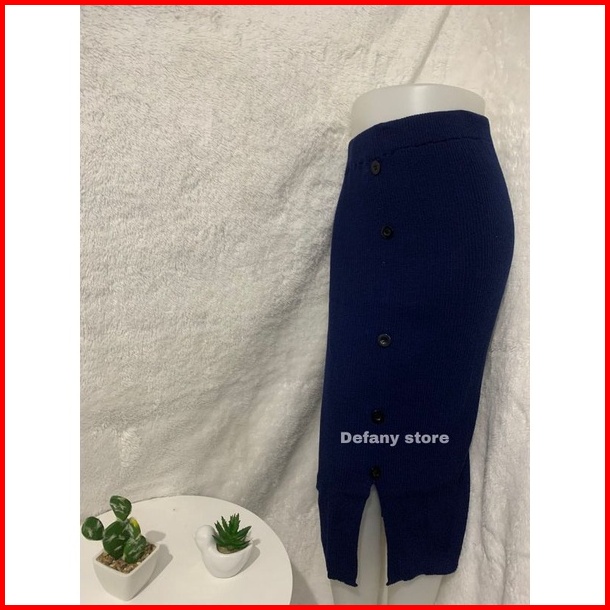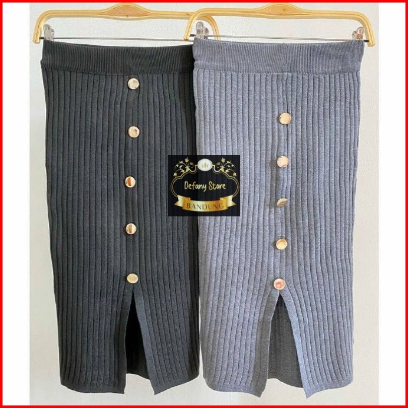 Flash Salerok Span Rajut Kancing Belah Pinggir Rok Midi Skirt Rok Rok Kancing Rajut Wanita 3 4
