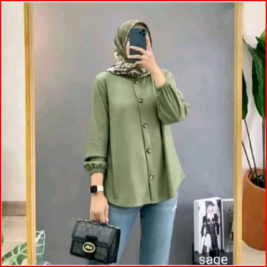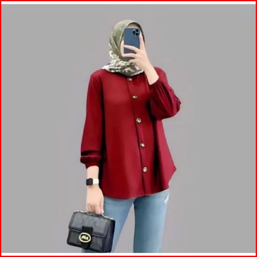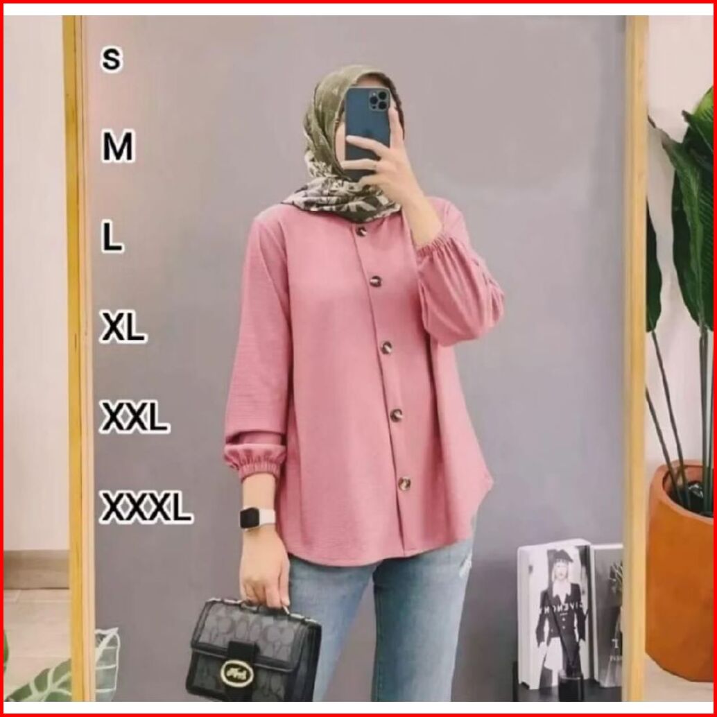 Kemeja Wanita Polos Cringkle Atasan Wanita Polos Lengan Panjang Terbaru Baju Wanita Kekinian