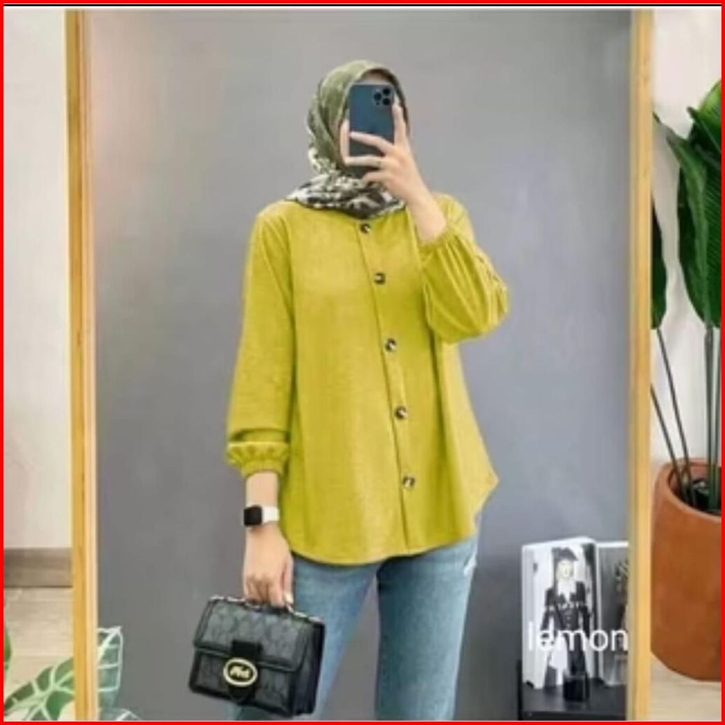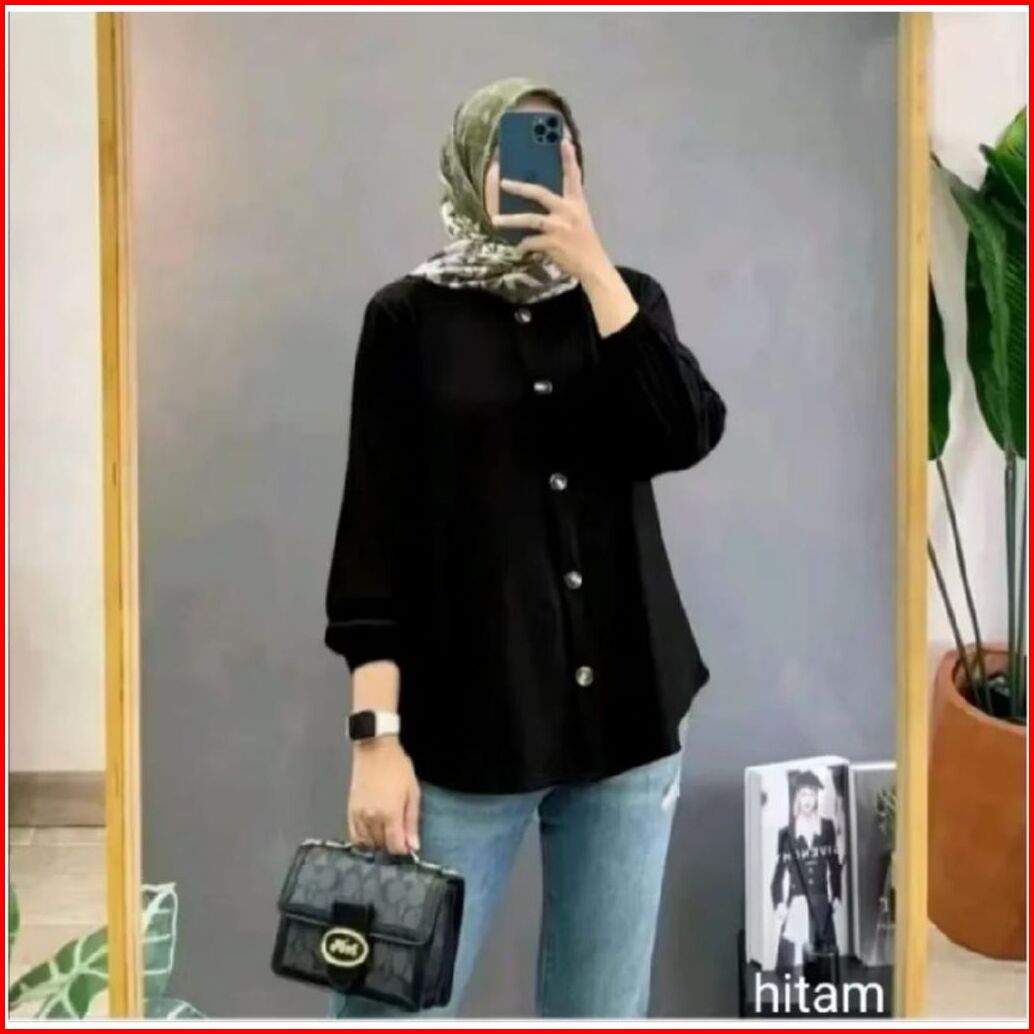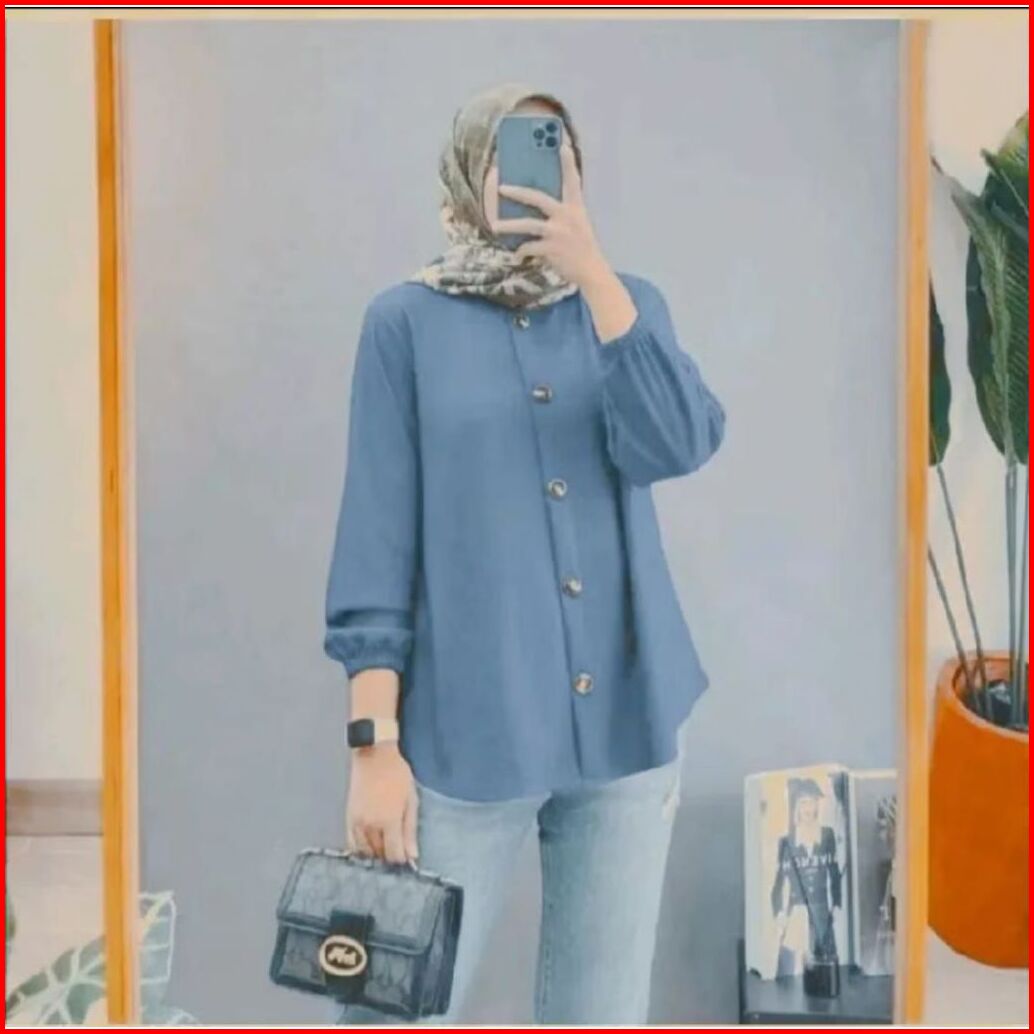 Kemeja Wanita Polos Cringkle Atasan Wanita Polos Lengan Panjang Terbaru Baju Wanita Kekinian