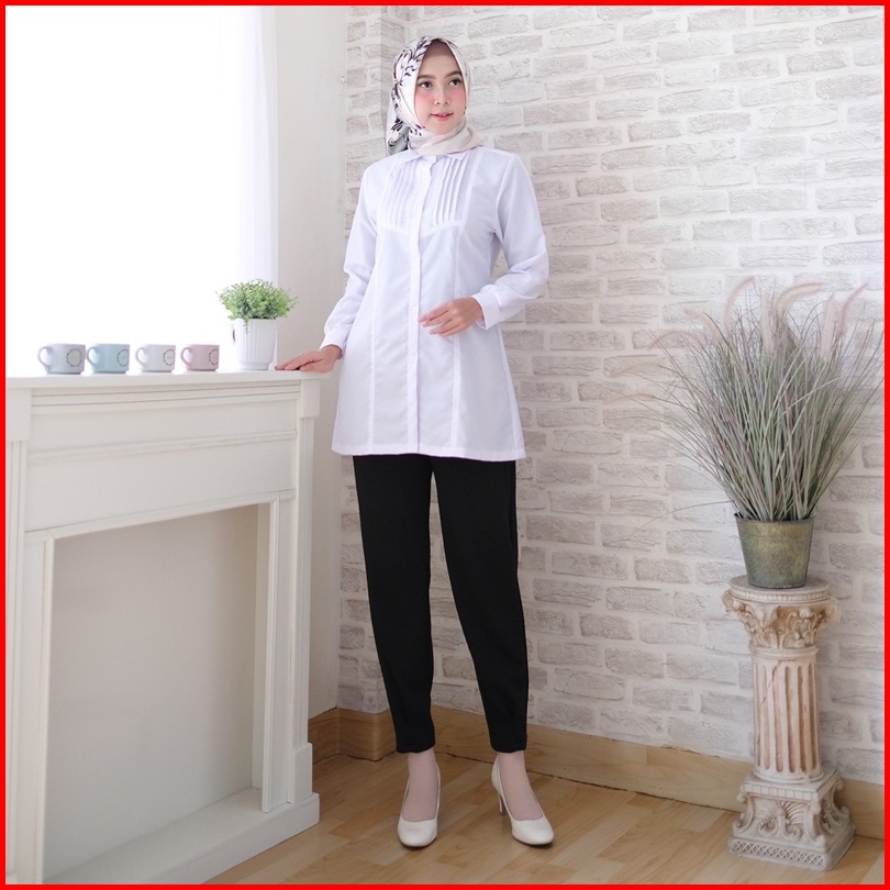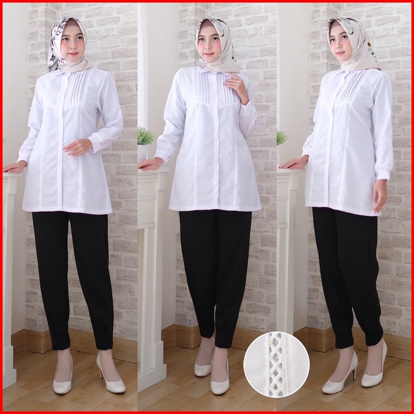 Seenaoutfit - Km 012 Baju Putih Kemeja Putih Polos Wanita Kerja Kantoran Pns Guru Ppl Atasan Baju Kantoran Cewek Jumbo T