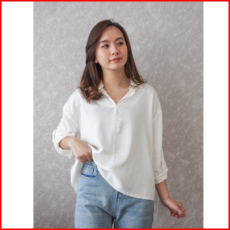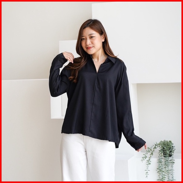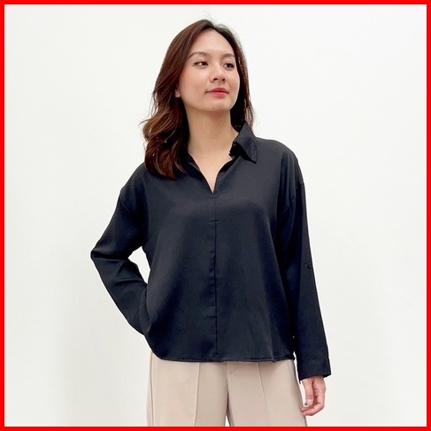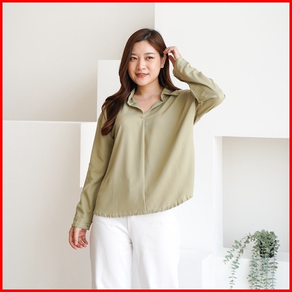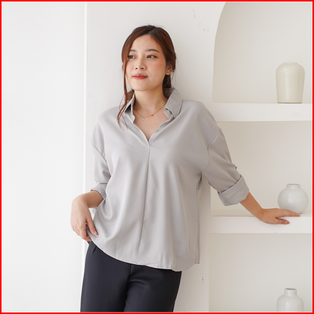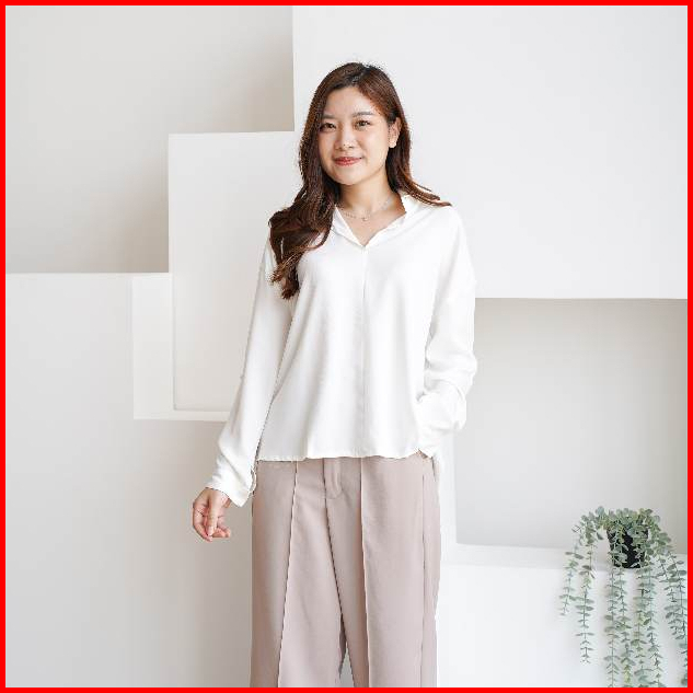Severli Briel Basic Blouse Wanita Lengan Panjang Kemeja Wanita Basic Blouse Atasan Wanita Basic