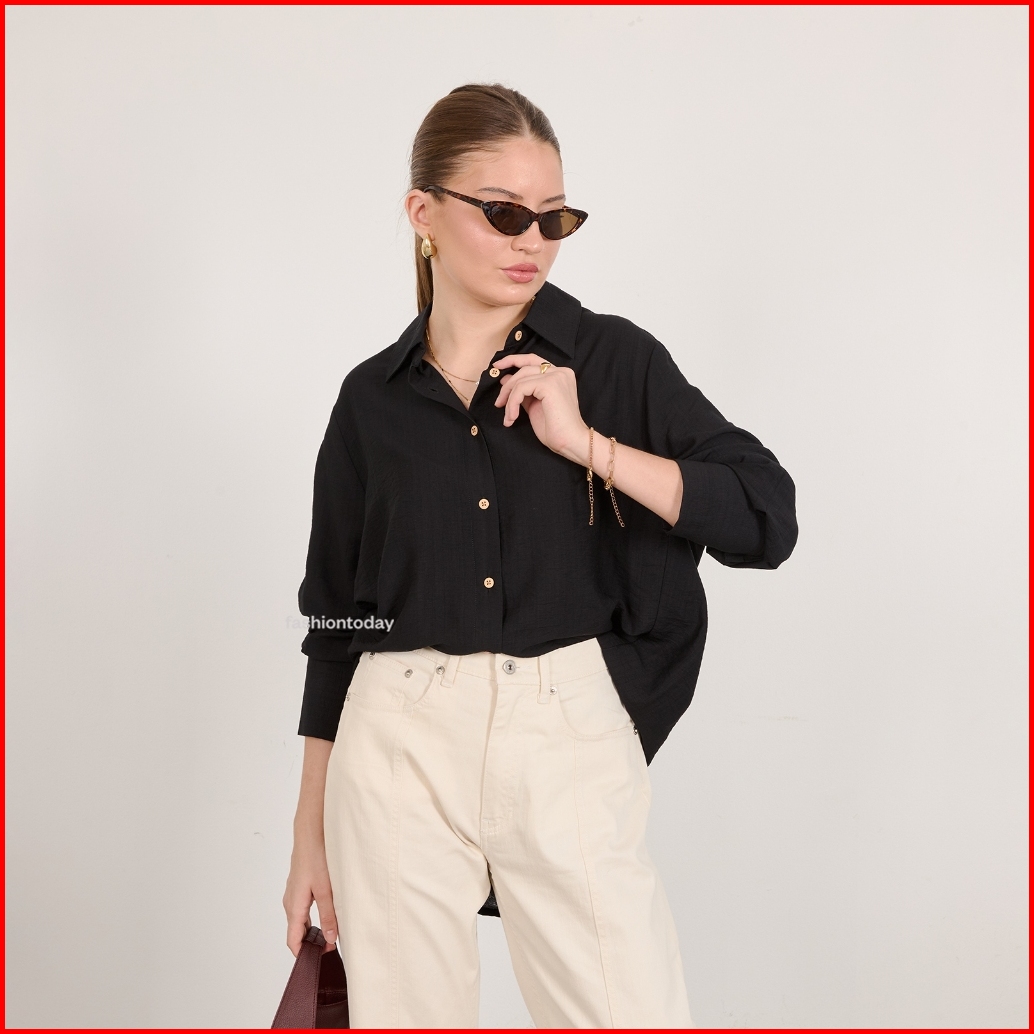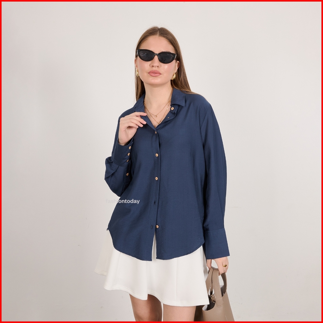 Jemi Shirt Linen Flowy Fashiontoday - Kemeja Linen Flowy Premium Wanita Lengan Panjang - Bisa Sampai Big Size 100kg