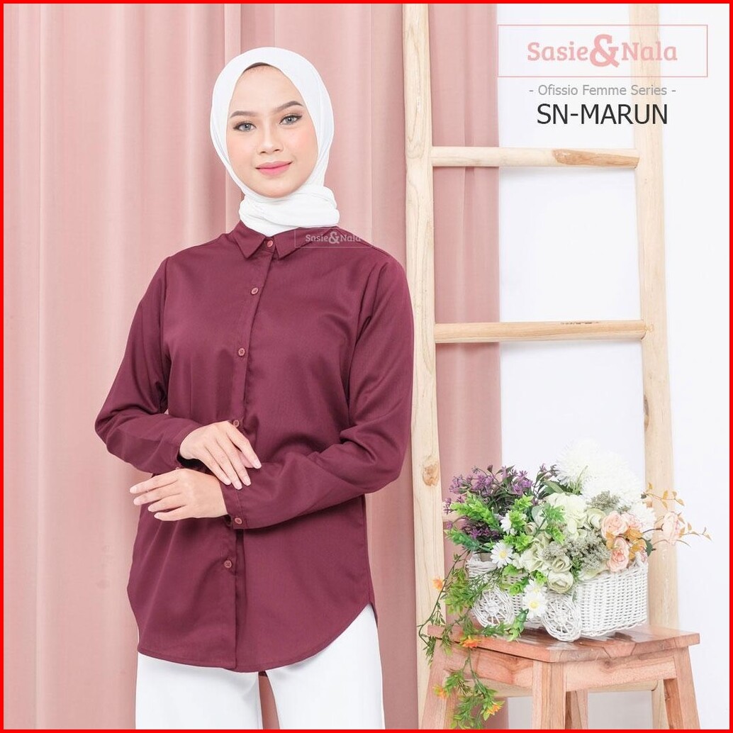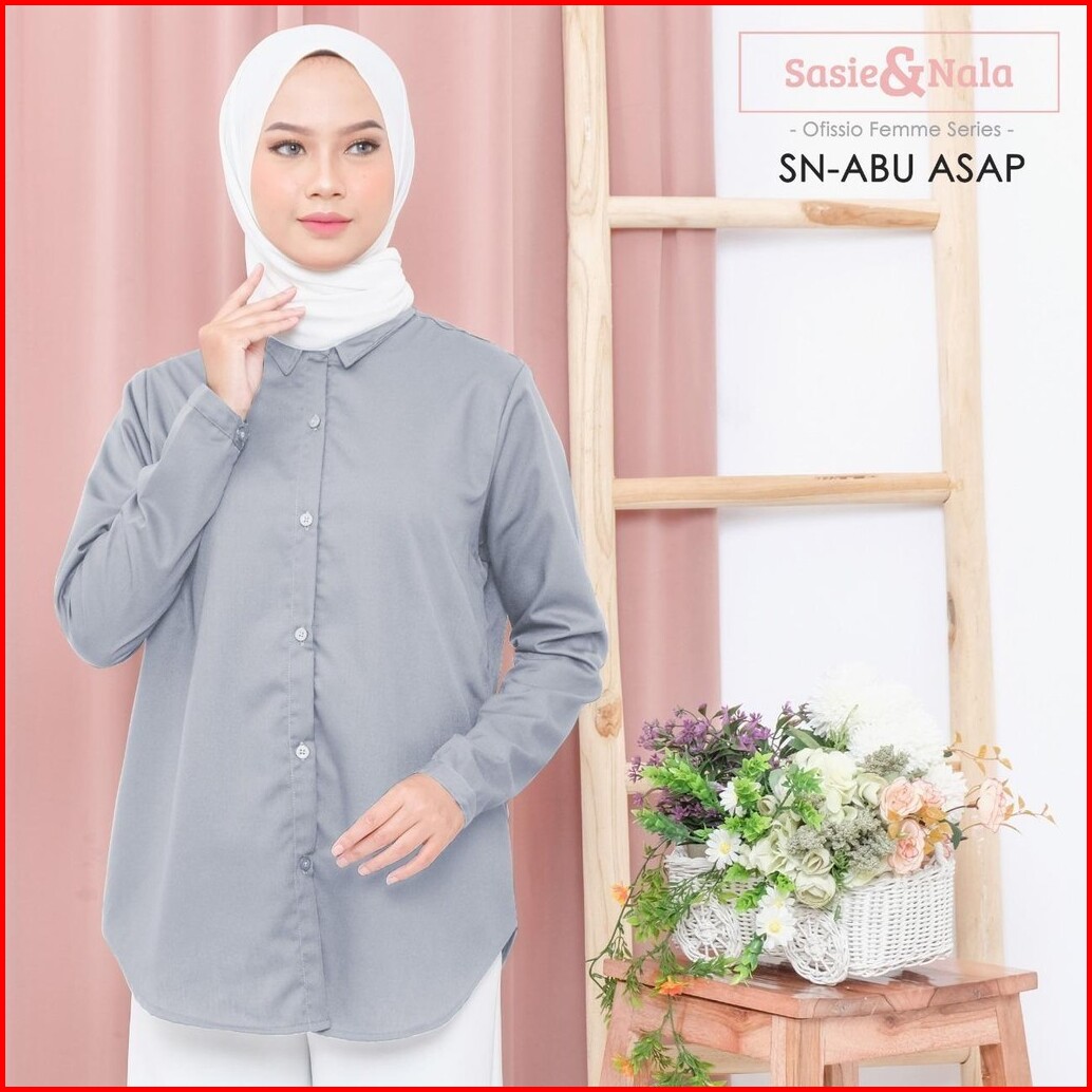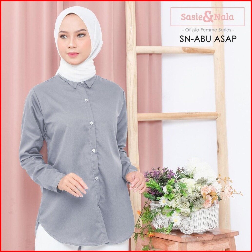 Kemeja Basic Lengan Panjang Atasan Wanita Katun Toyobo Sasienala - Netral Warna Basic Series