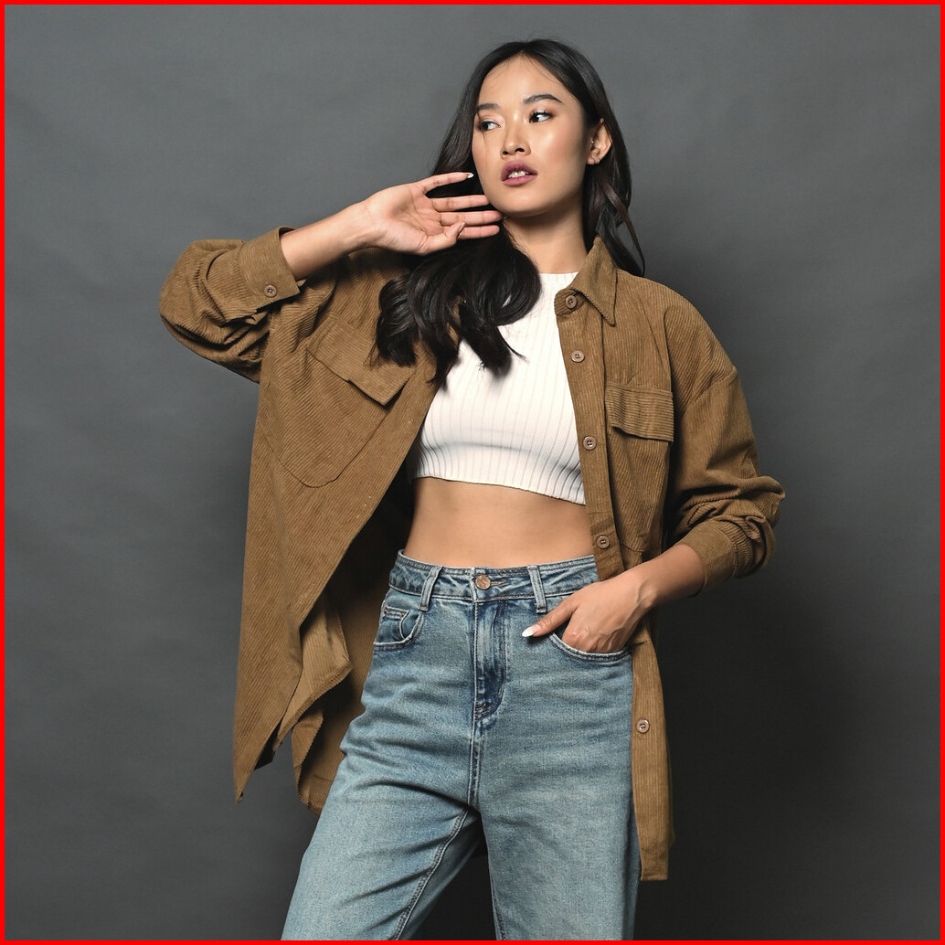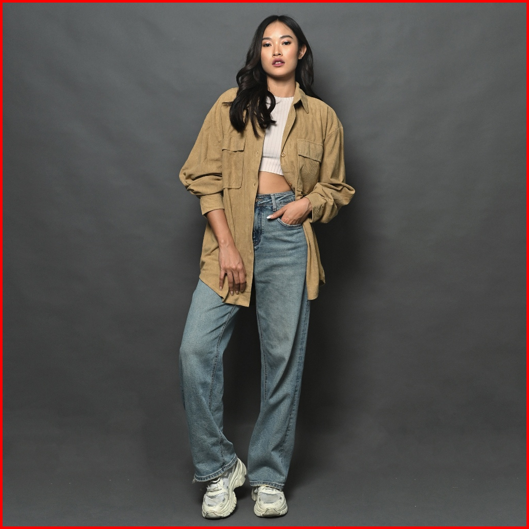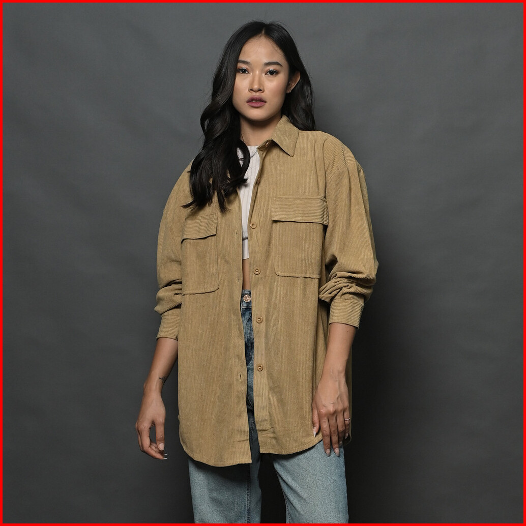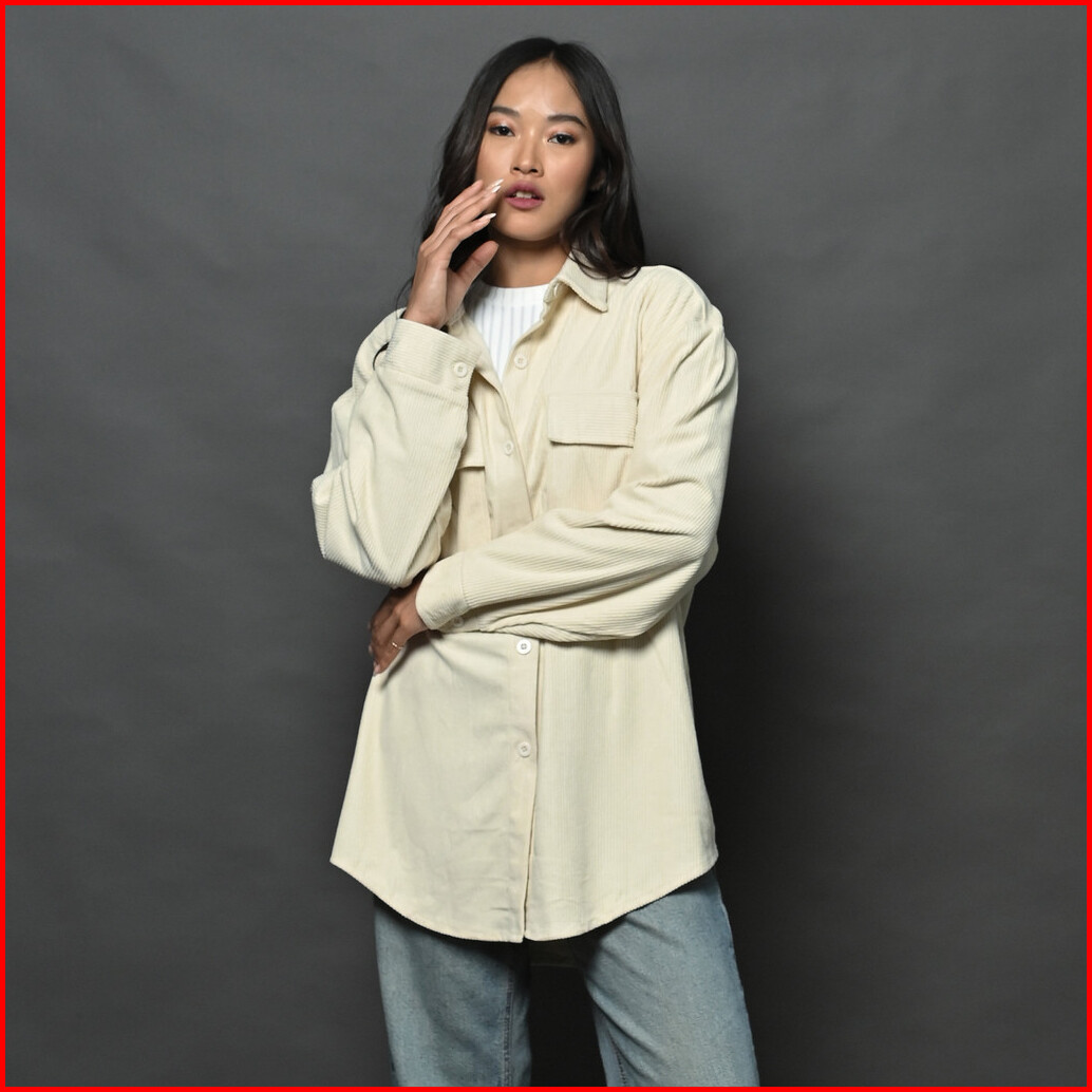 Queentin Kemeja Wanita Oversize 002 Corduroy Polos Lengan Panjang