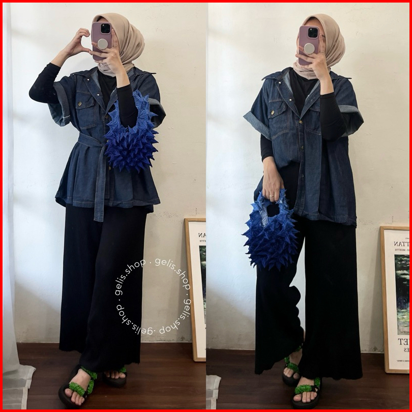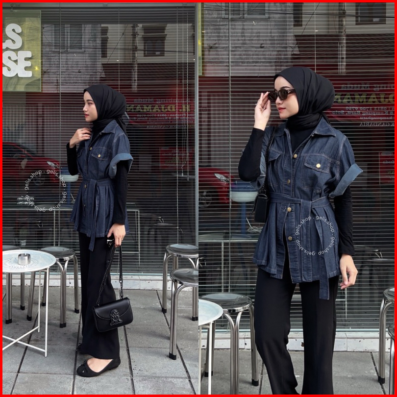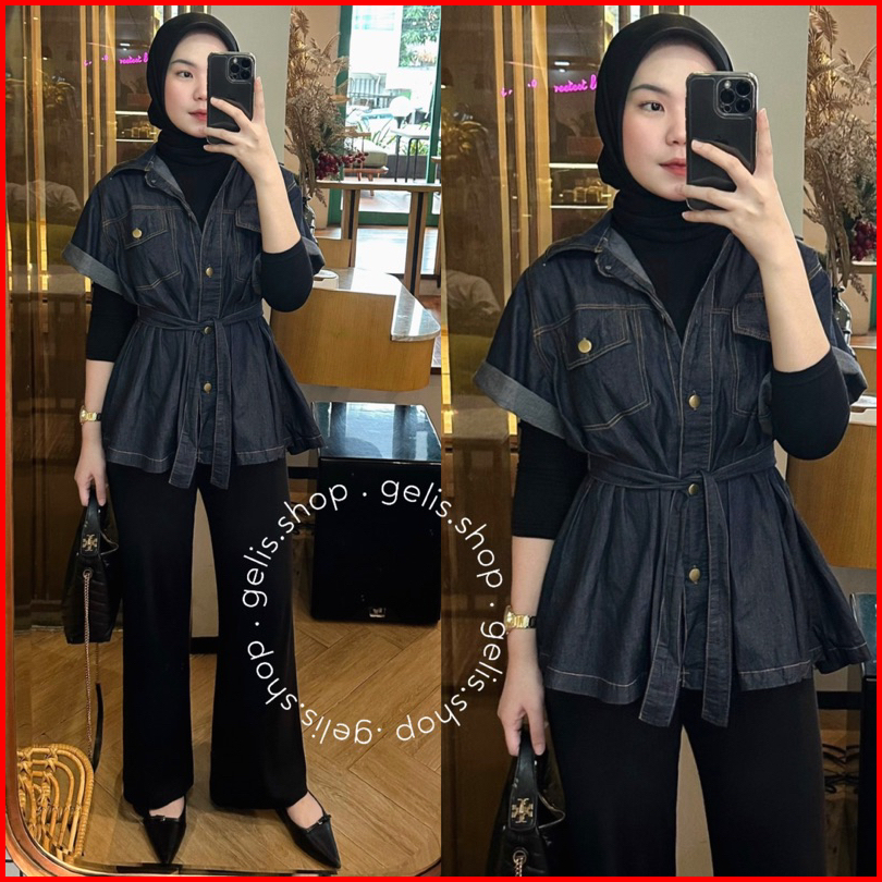 Senna Blouse Jeans Blouse Atasan Wanita Kemeja Jeans