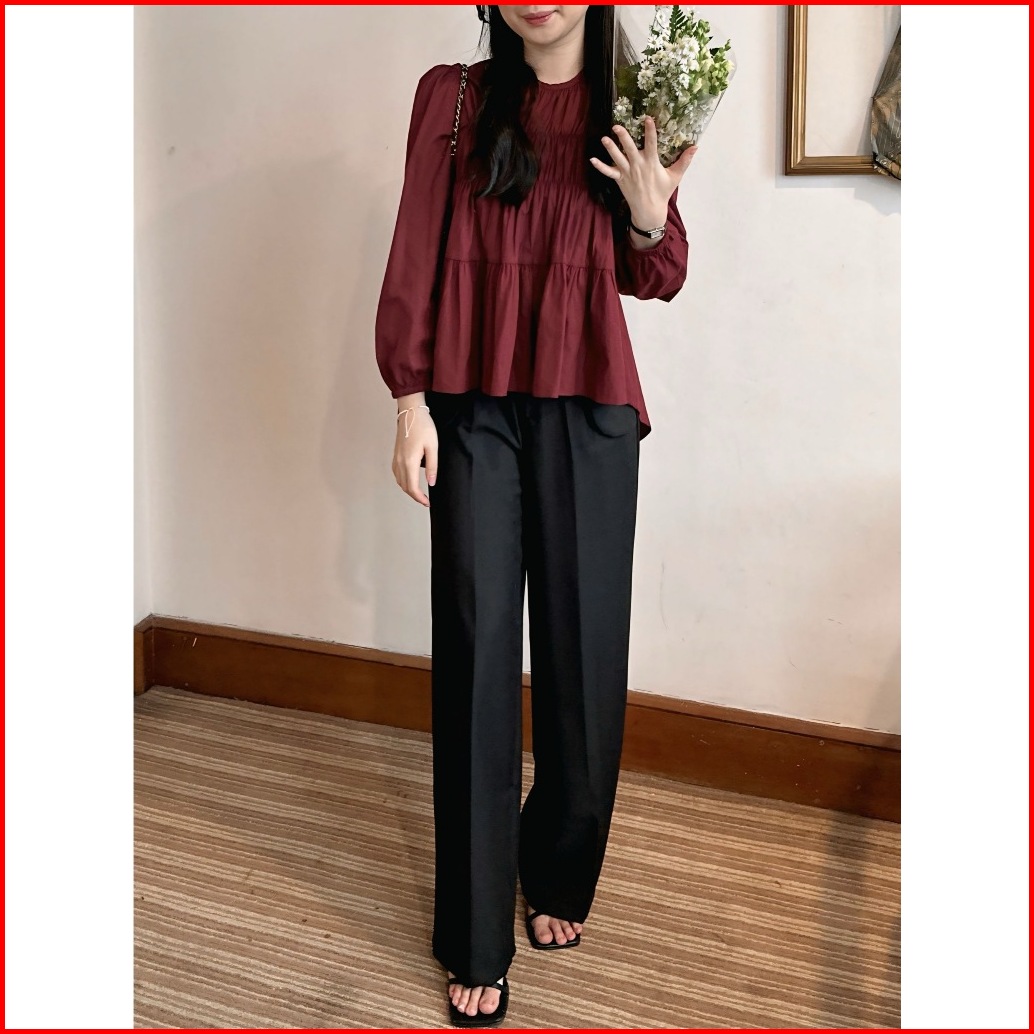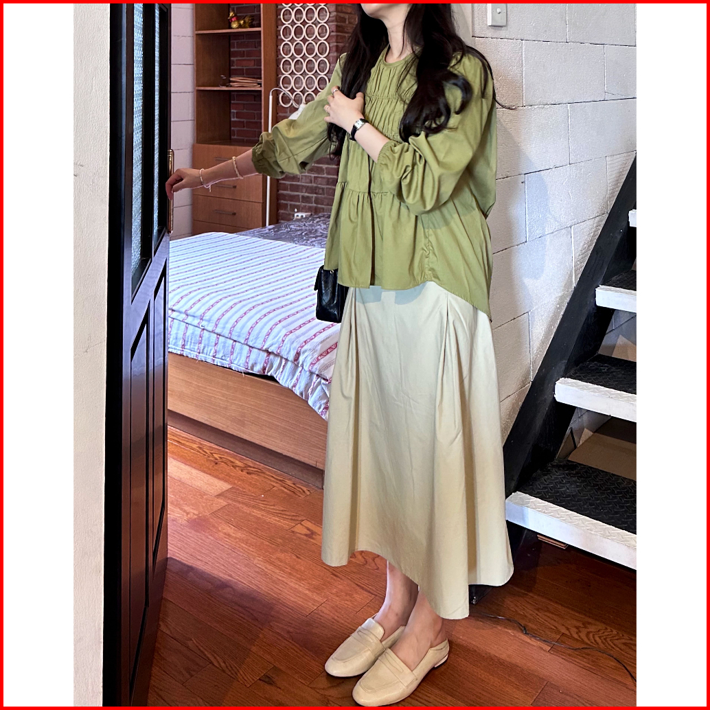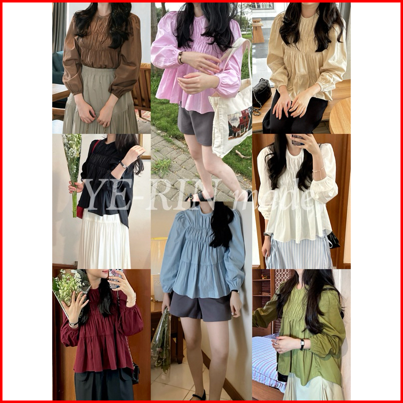 Ye-rin Eunseo Long Sleeves Cotton Top 8 Colors Atasan Casual Wanita Korean Style