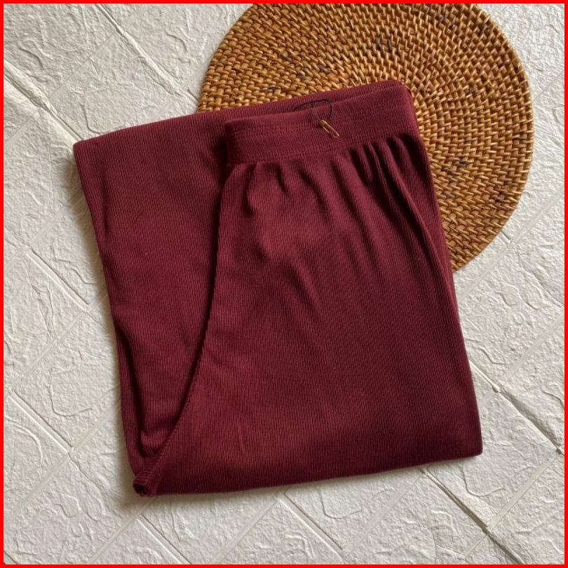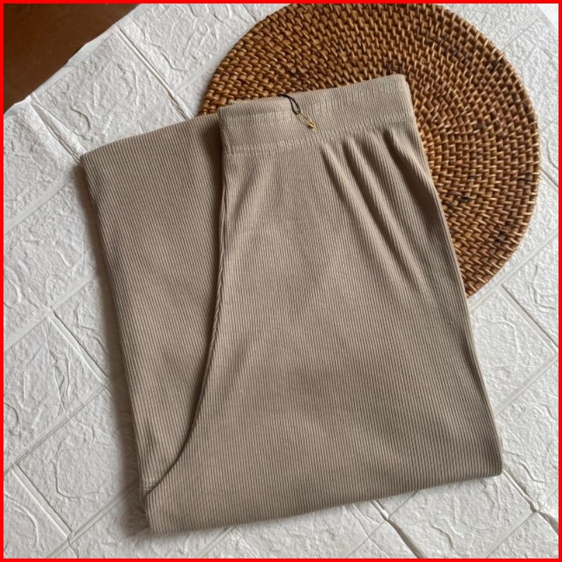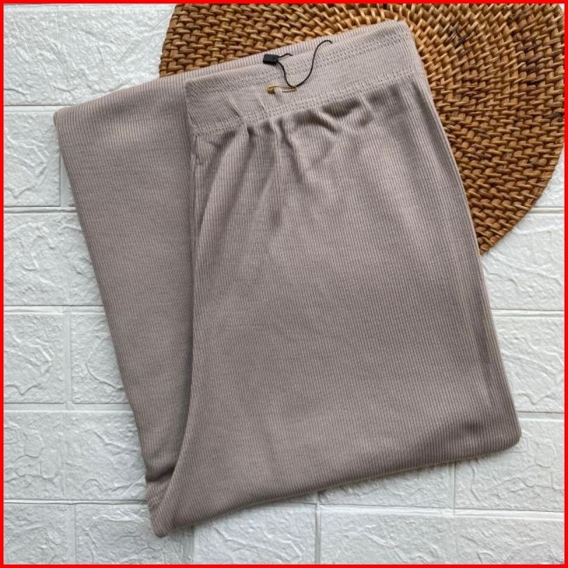 Celana Kulot Wanita Jumbo Rib Knit High Waist Premium Celana Kulot Santai Murah