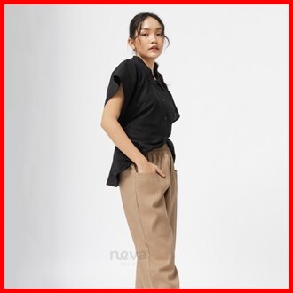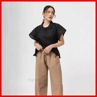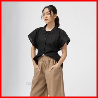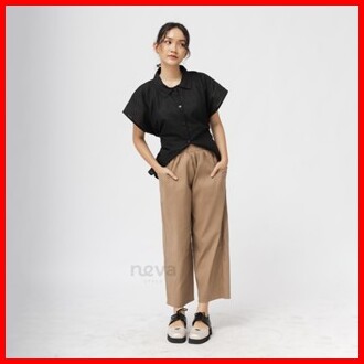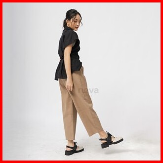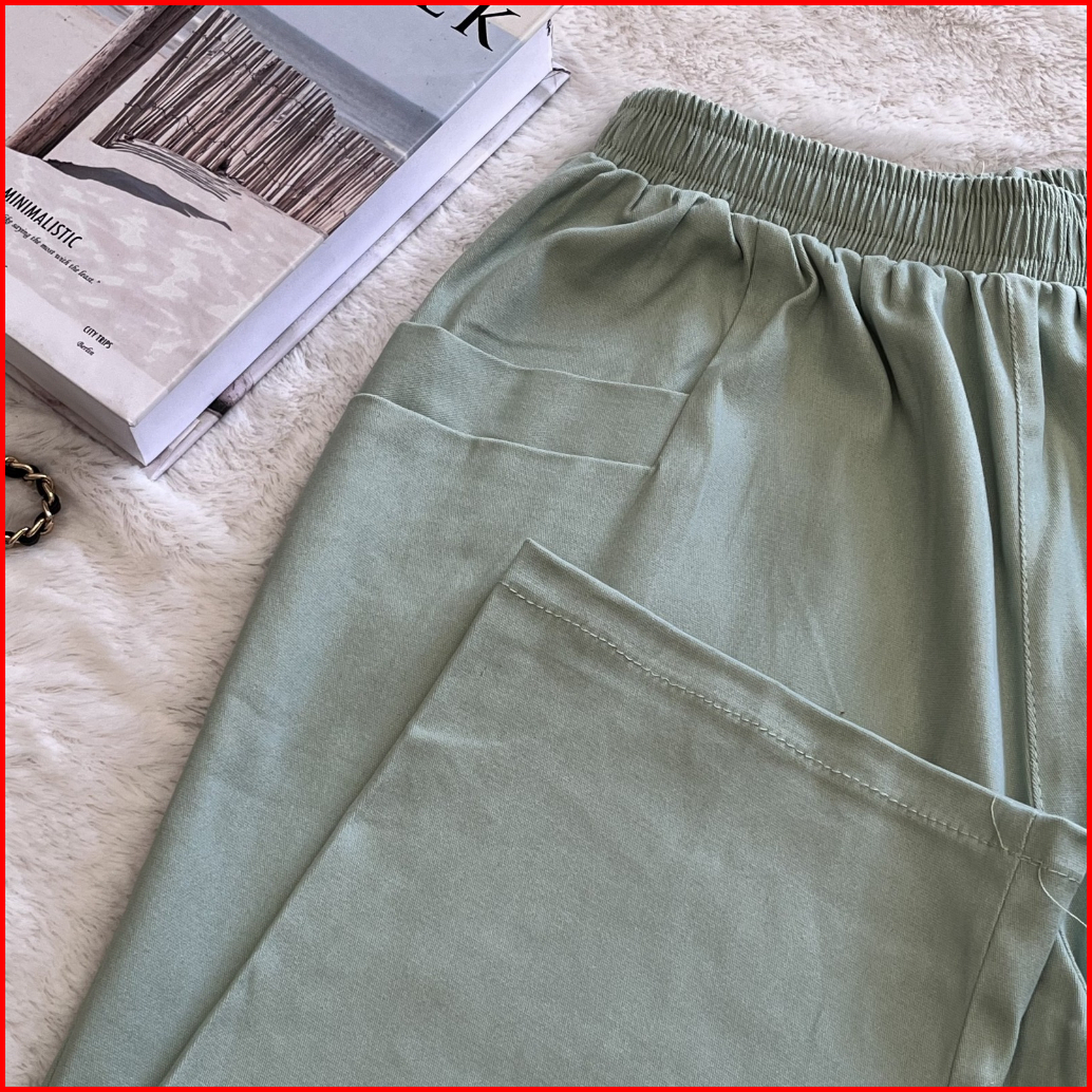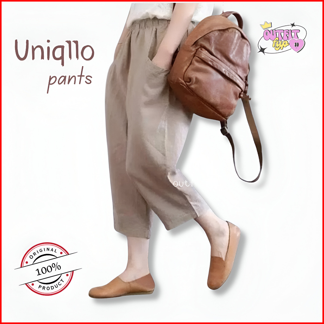 Celana Kulot Wanita Jumbo Uniqllo - Bahan Katun Twill - Celana Oversize Pinggang Karet - Melar Halus