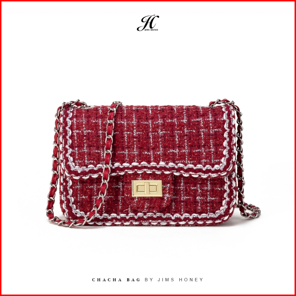 Jims Honey - Cha Cha Bag Tas Selempang Wanita Sling Bag Hand Bag Tweed Rajut Vintage Merah