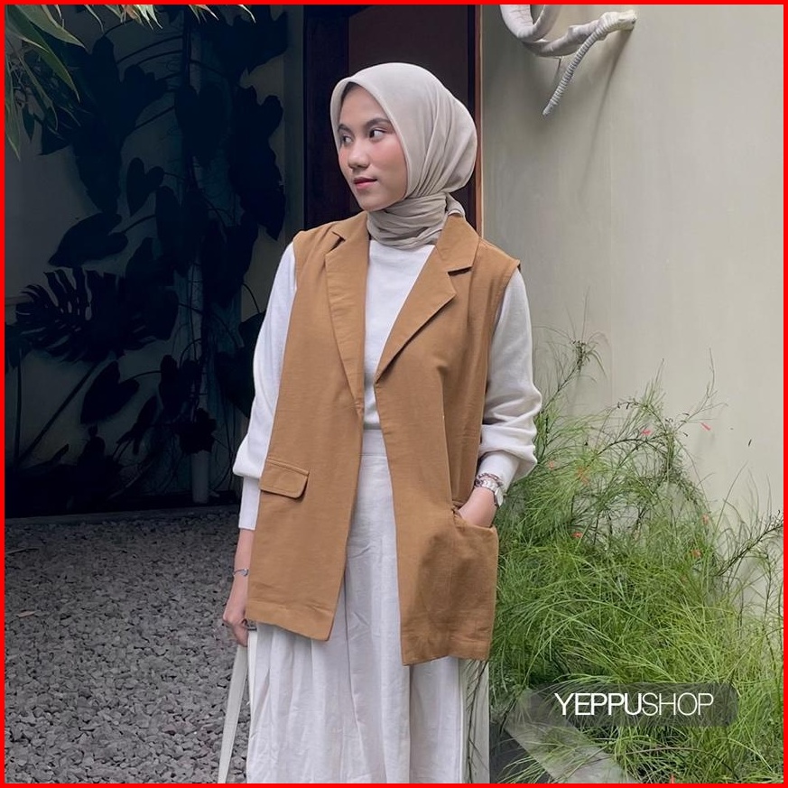 Yeppuoutfit - Yeoura Sleeveless Blazer I Blazer Berbahan Linen Tanpa Lengan Skena Style