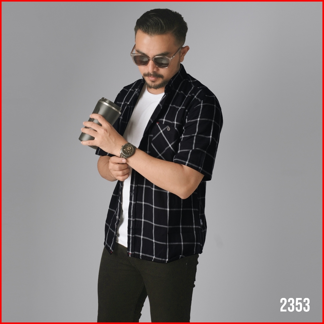 Dgm Kemeja Pria Flanel Lengan Pendek Premium Hitam Garis Putih 2353