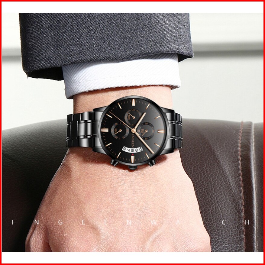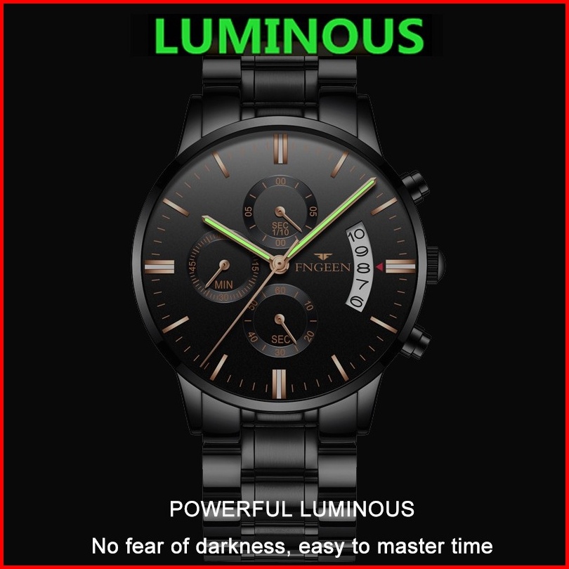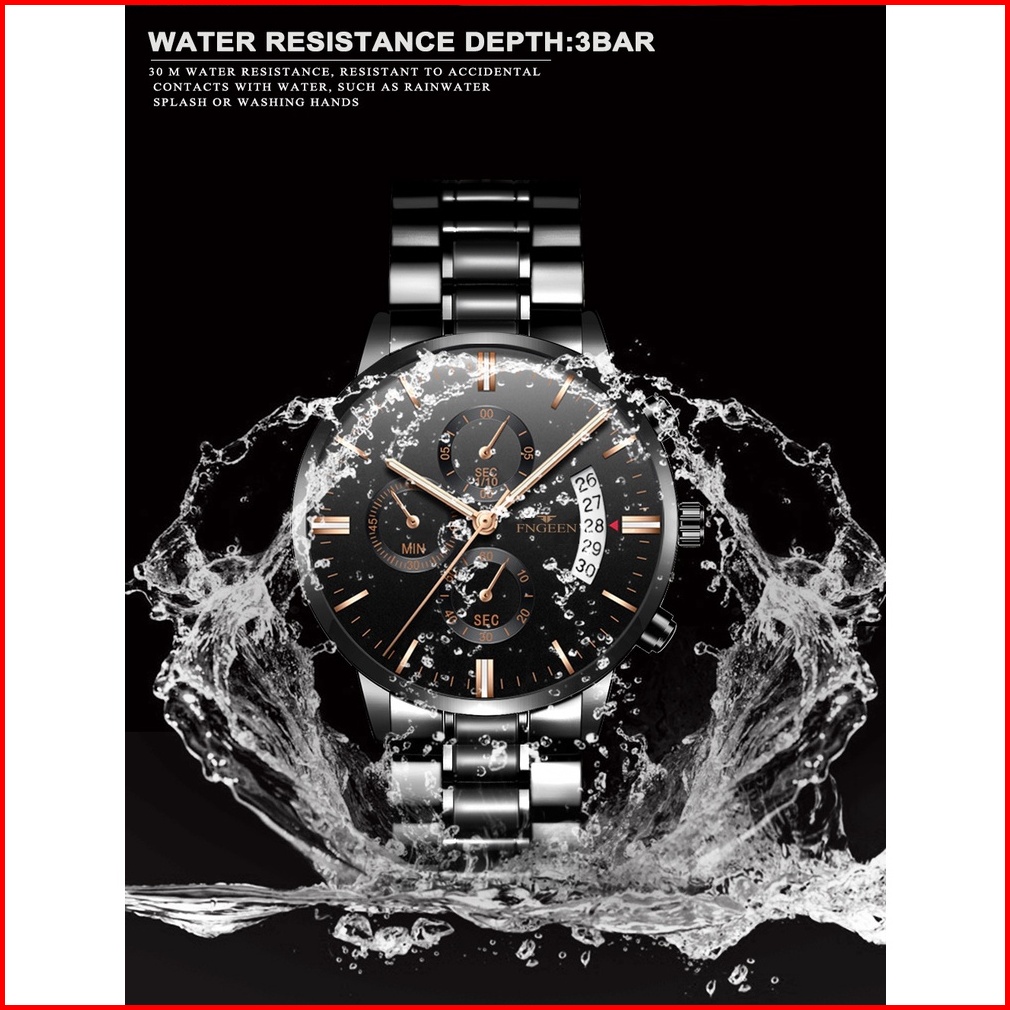 Fngeen 5055 Jam Tangan Pria Luxury Stainless Steel Quartz Original Anti Air Watch Kotak Gratis