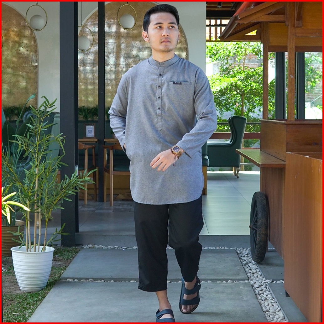 Khoirummah Koko Kurta Makkah - Baju Muslim Pria Dewasa Polos Lengan Panjang - Dark Grey