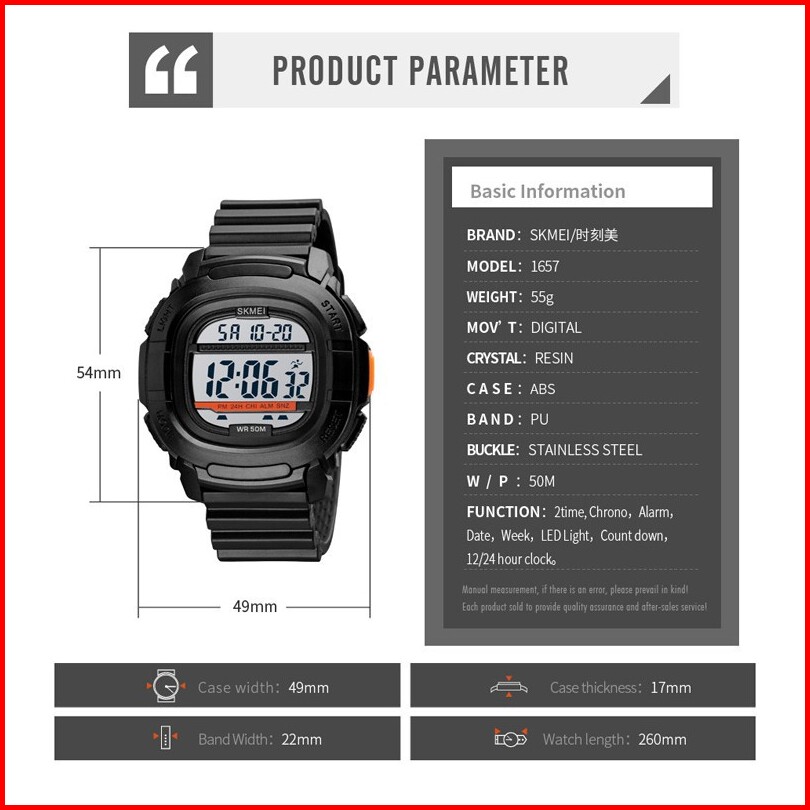 Skmei 1657 Led Display Digital Military Sports Watches Stopwatch Men S Watch