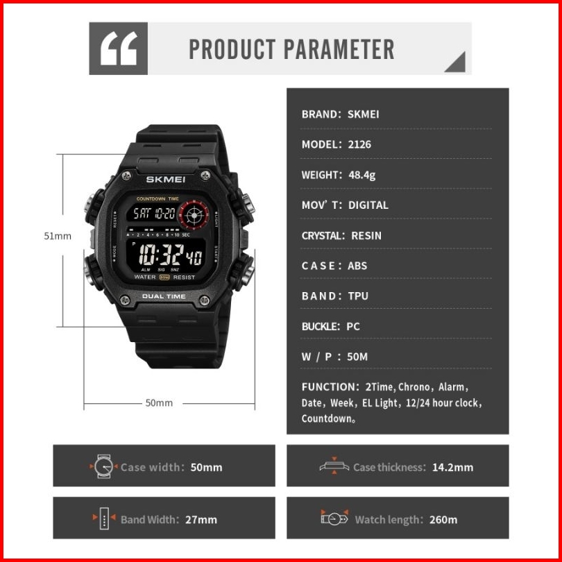 Jam Skmei 2126 Digital Sporty Trendy Free Gift Box