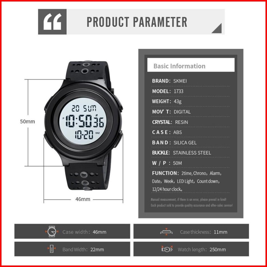 Jam Tangan Pria Skmei 1733 Digital Rubber Strap Original Anti Air 30 Meter