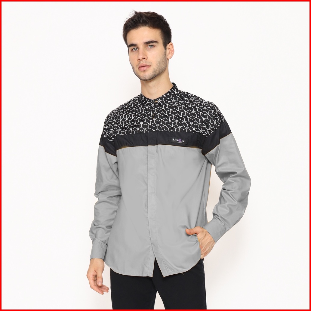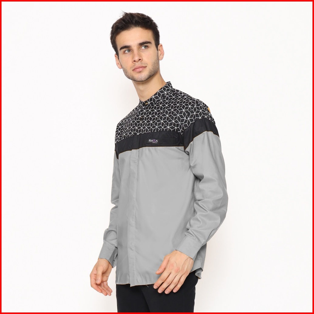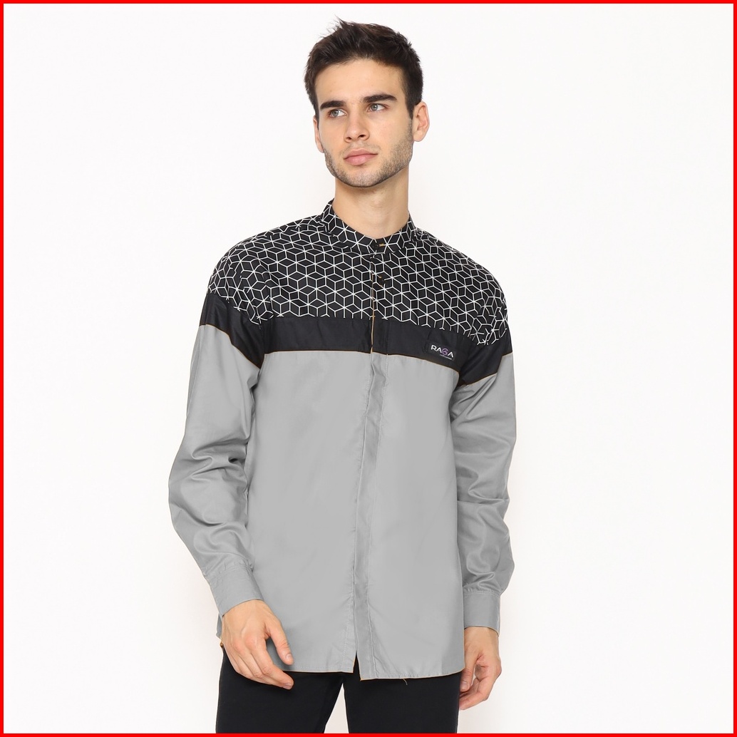 Alawi - Baju Koko Pria Lengan Panjang Motif Senopati Kombinasi Hadroh Azzahir Warna Abu M L Xl