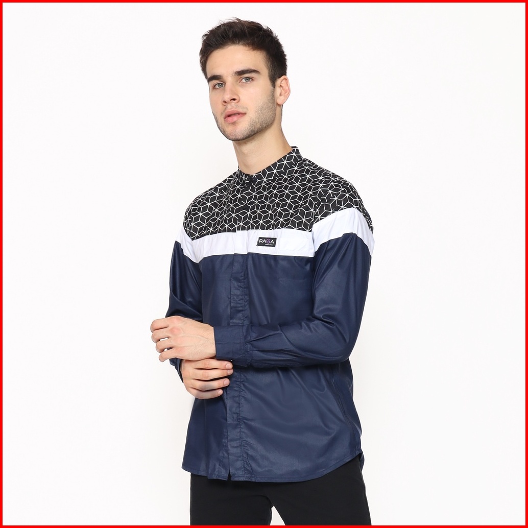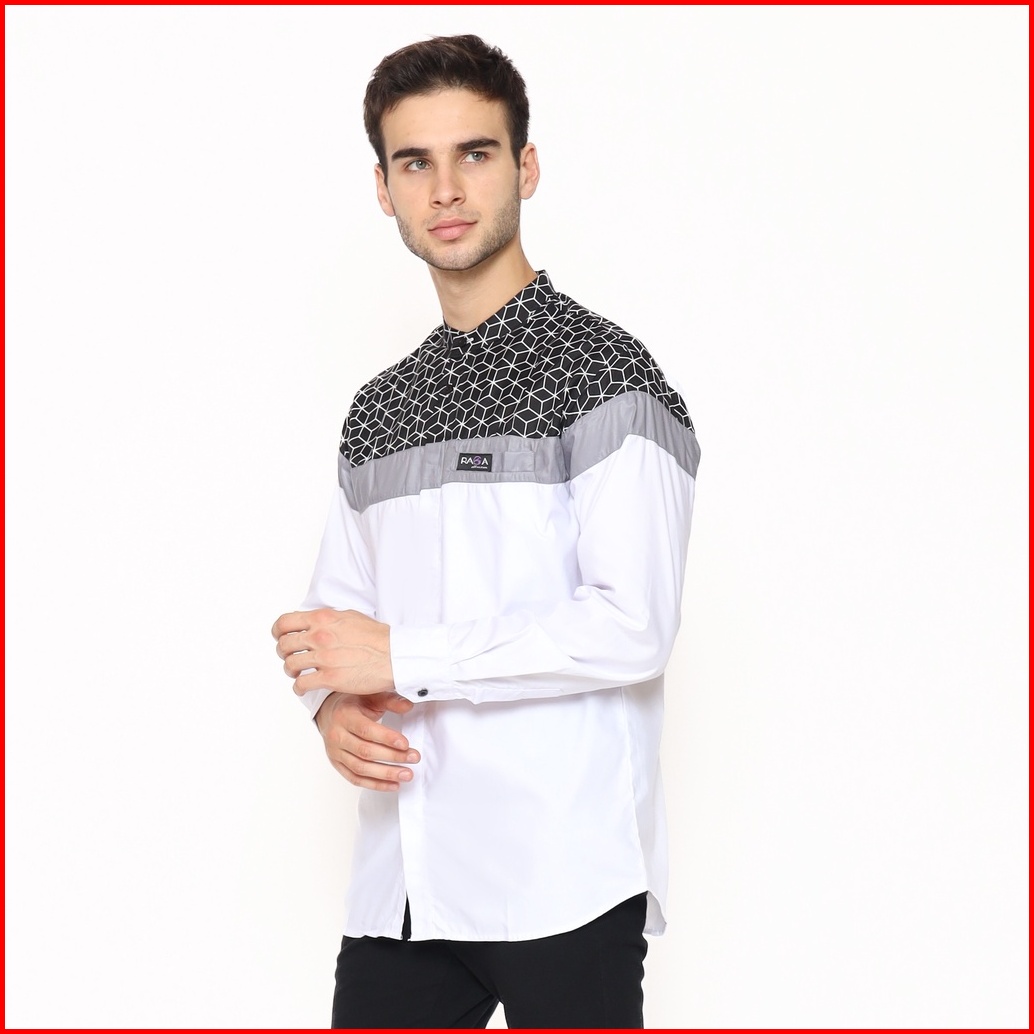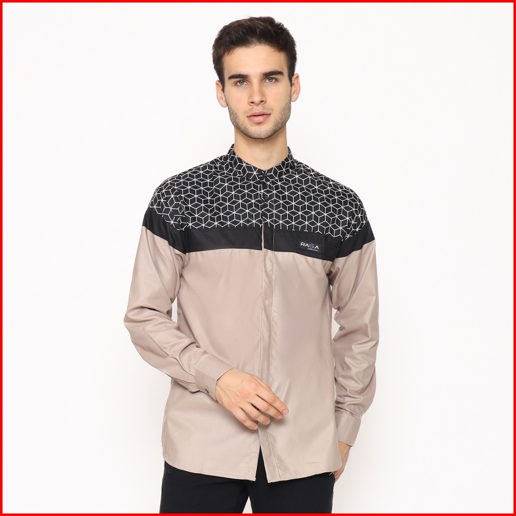Alawi - Baju Koko Pria Lengan Panjang Motif Senopati Kombinasi Hadroh Azzahir Warna Abu M L Xl