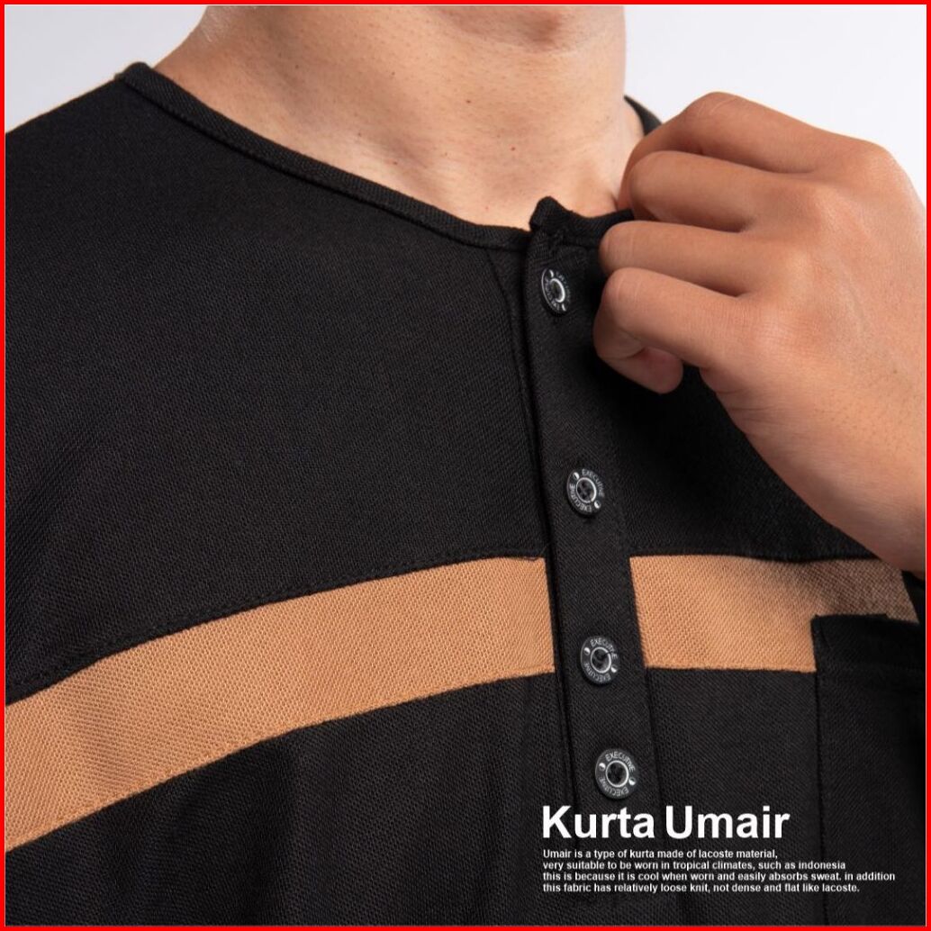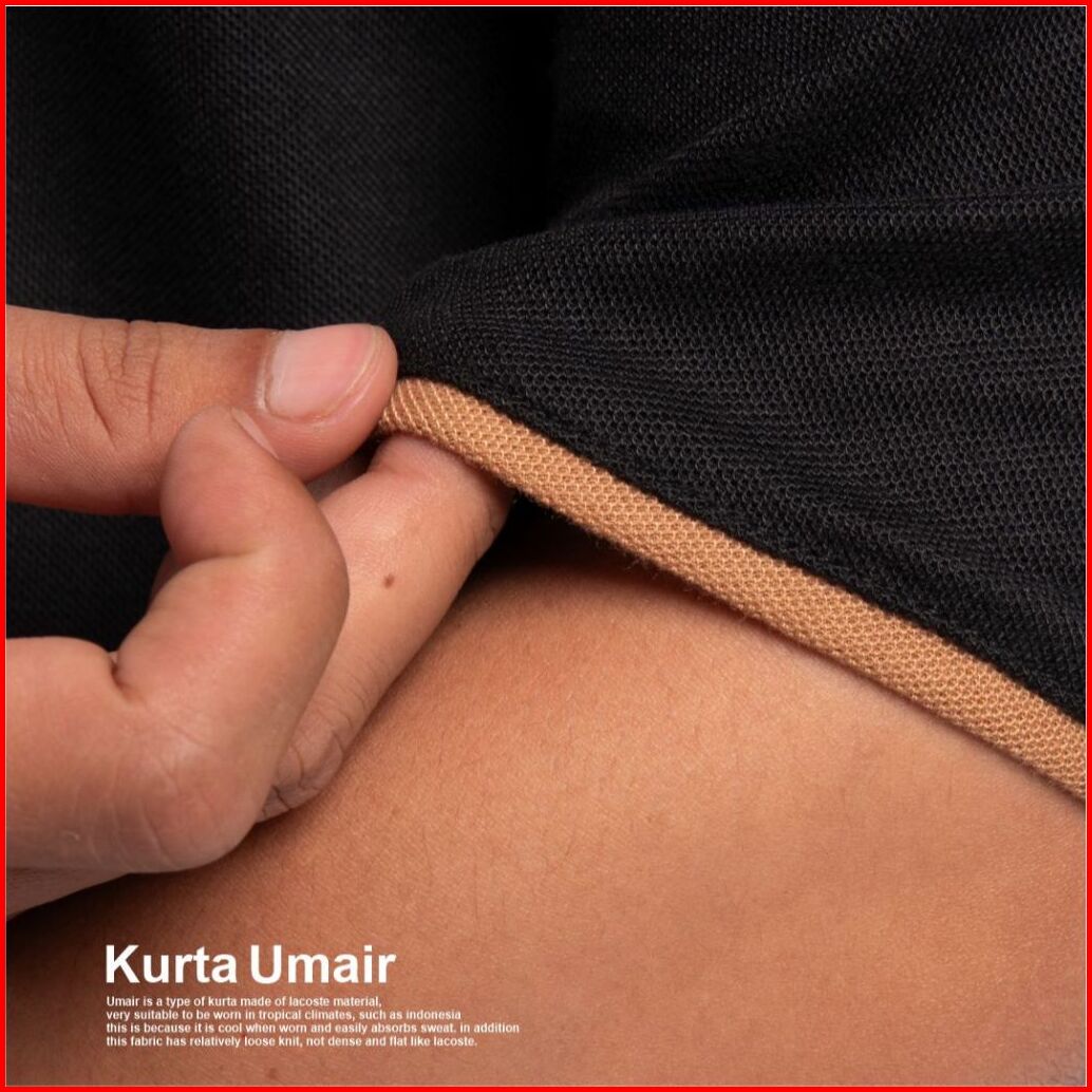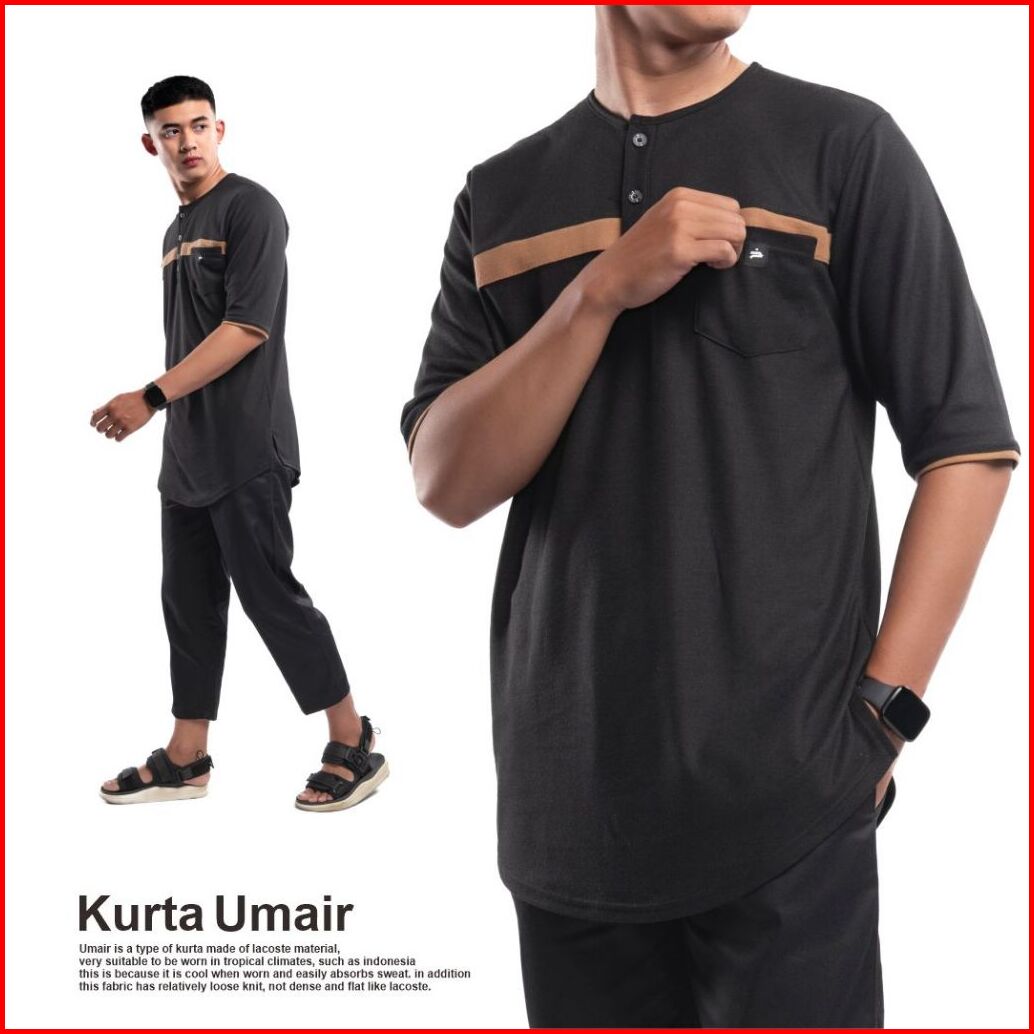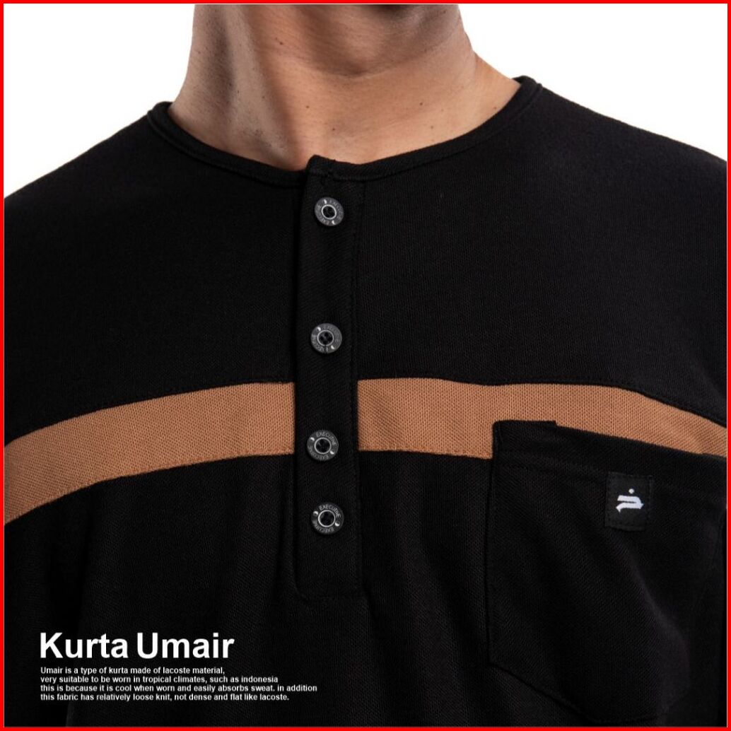 Khoirummah Kurta Umair Dewasa - Koko Kaos - Kurta Pakistan Polos Lengan 3 4 - Black