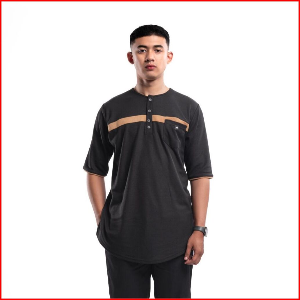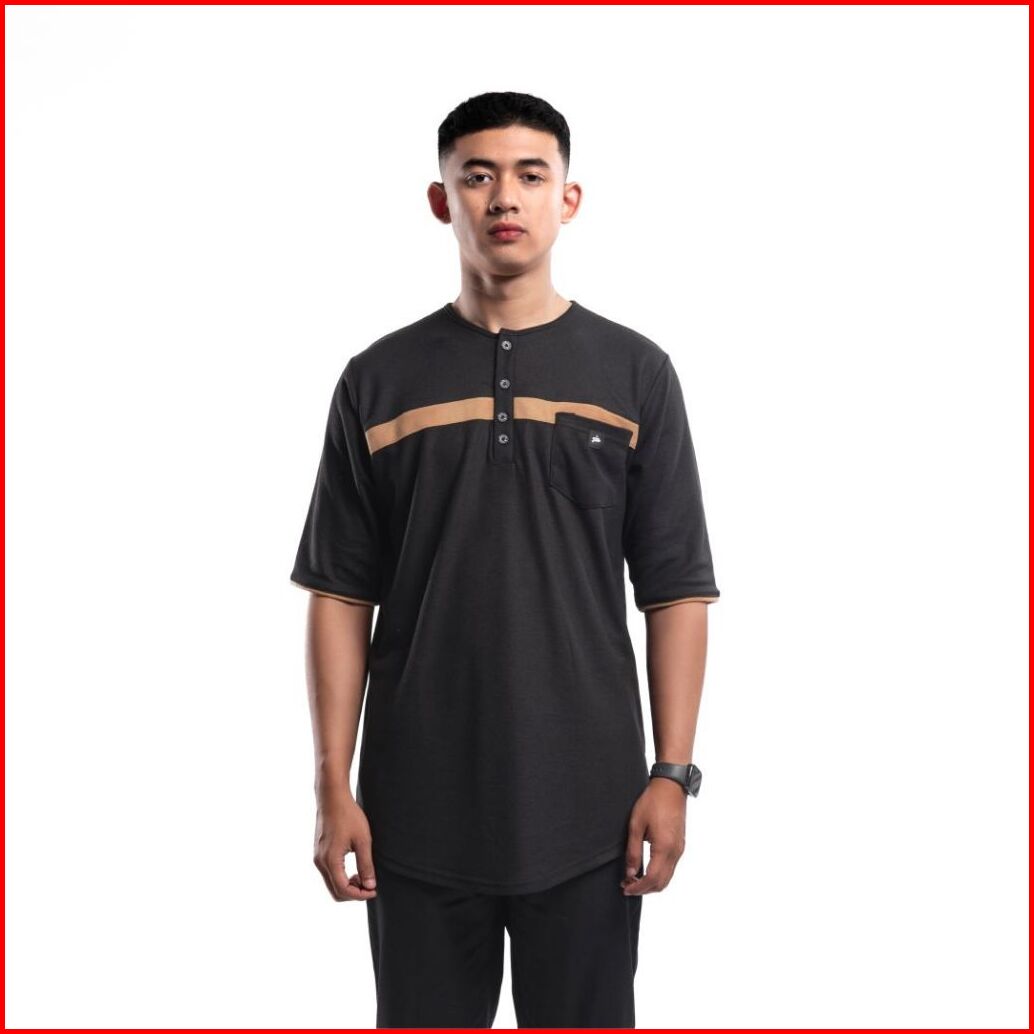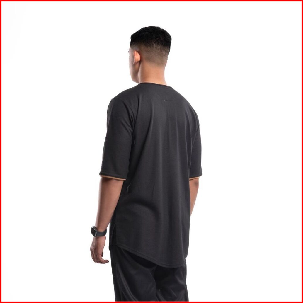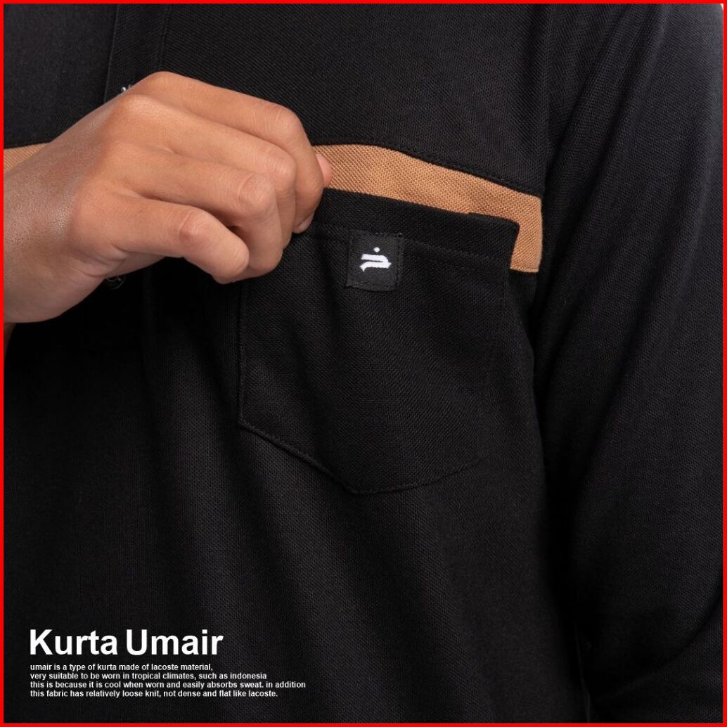 Khoirummah Kurta Umair Dewasa - Koko Kaos - Kurta Pakistan Polos Lengan 3 4 - Black