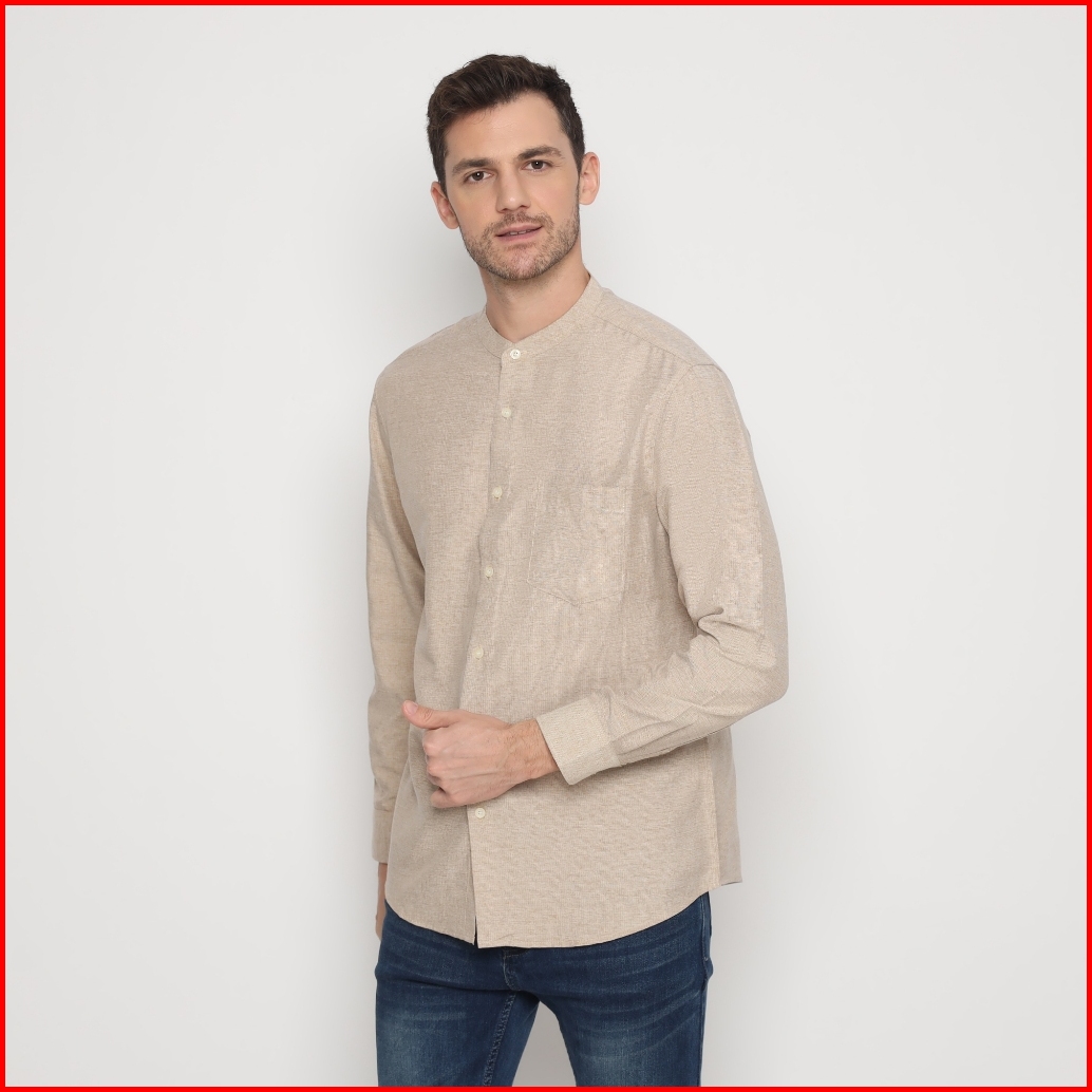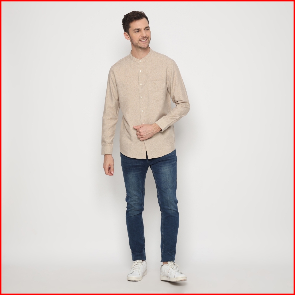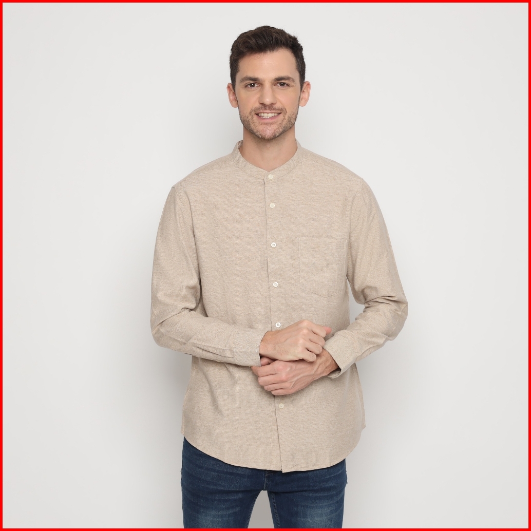 Platini Kemeja Pria Koko Shanghai Lengan Panjang Katun Coklat 22024