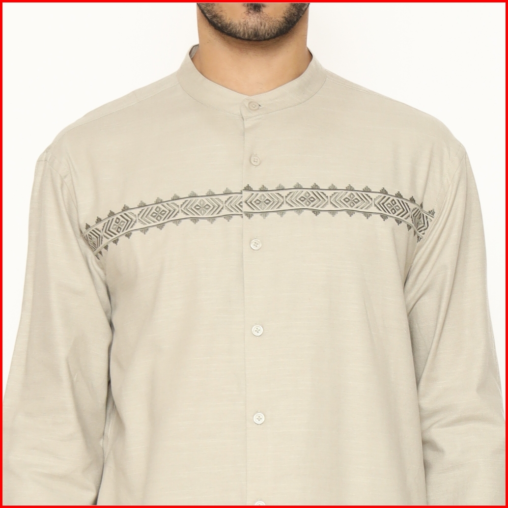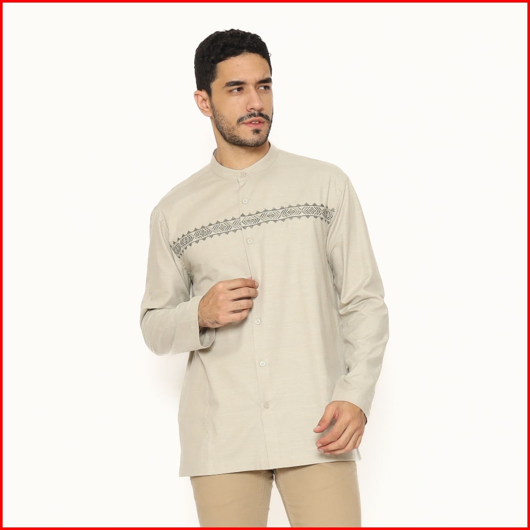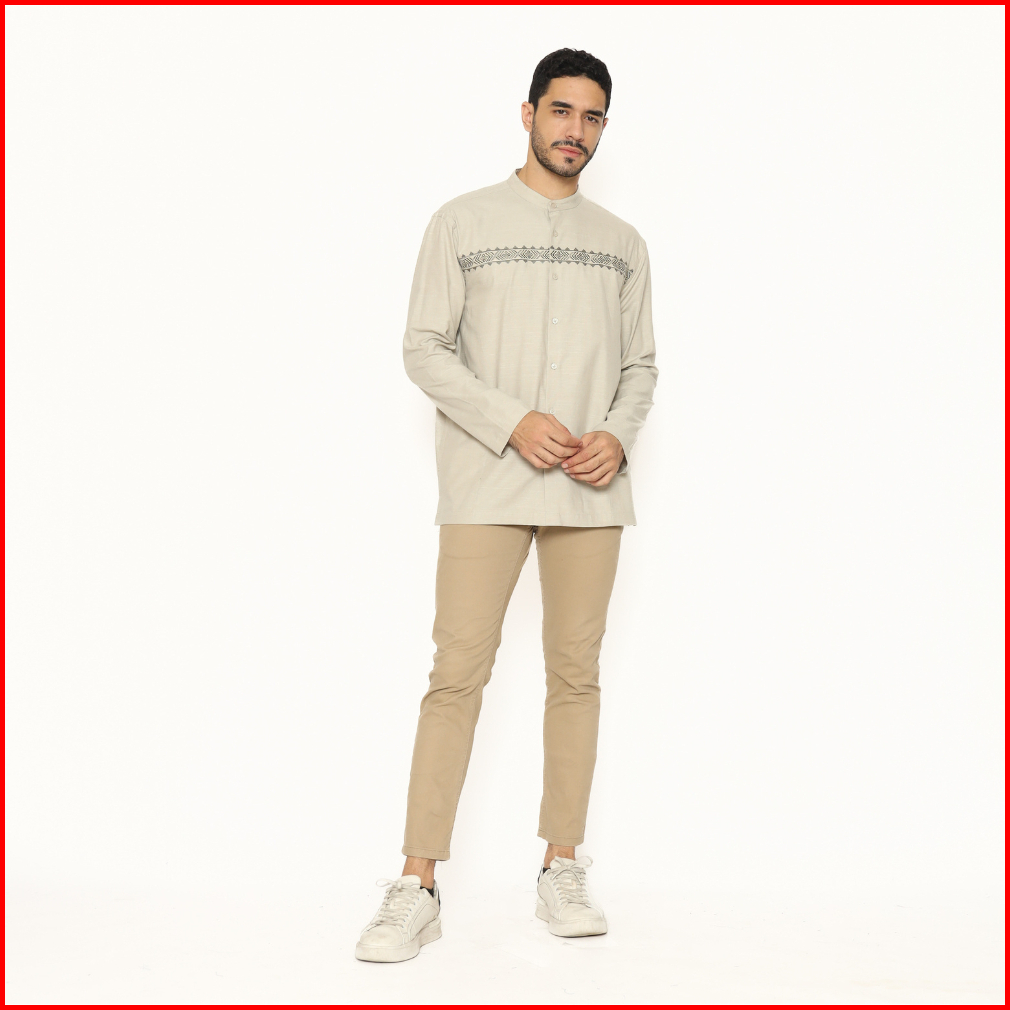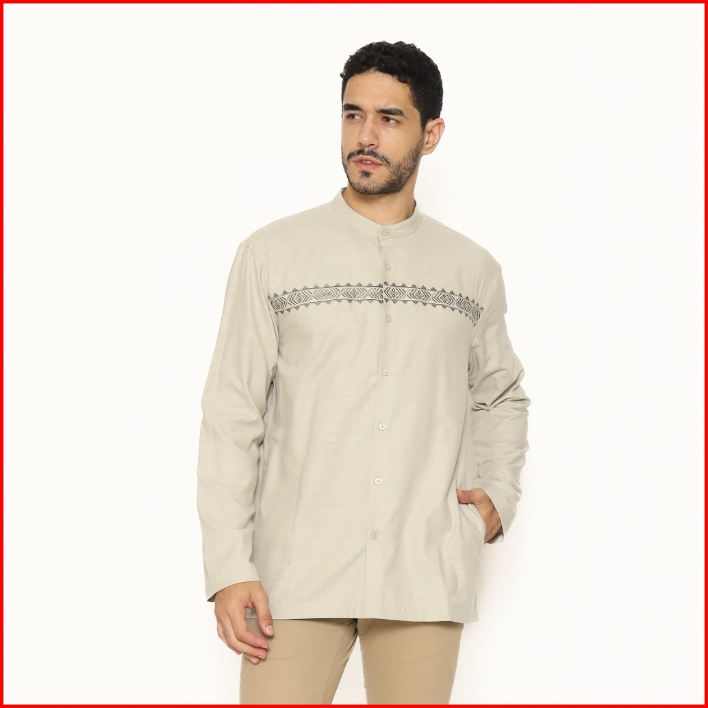 Amk Baju Koko Lengan Panjang Bordir Kk Haikal L S Light Grey