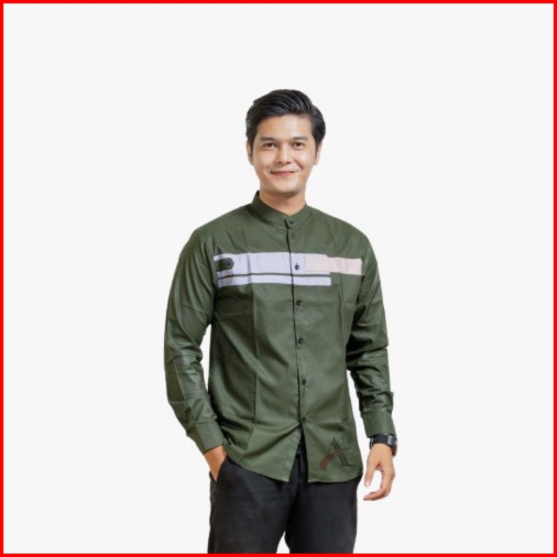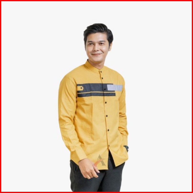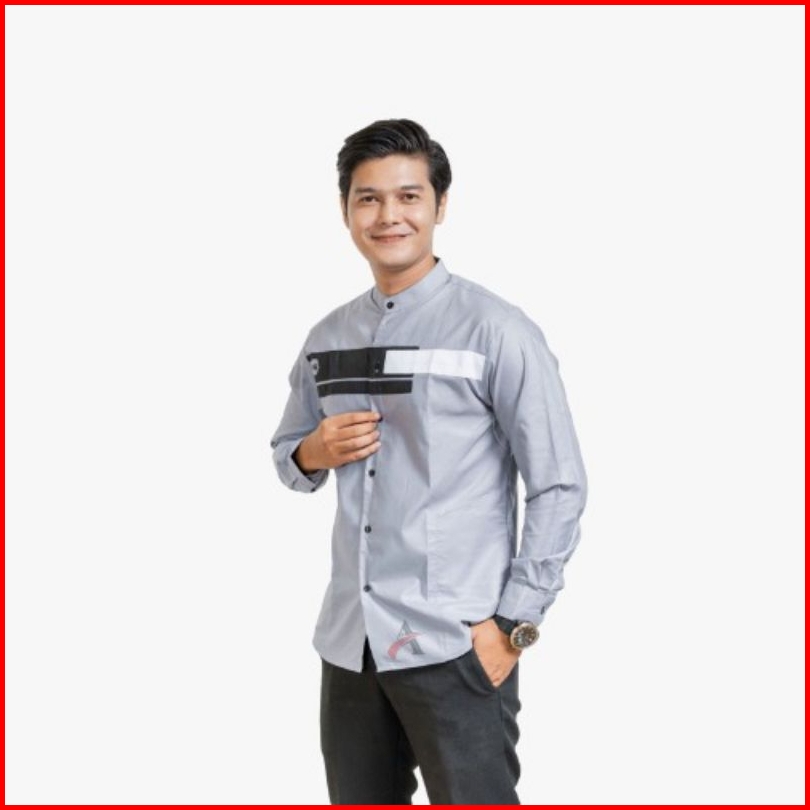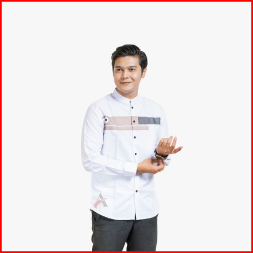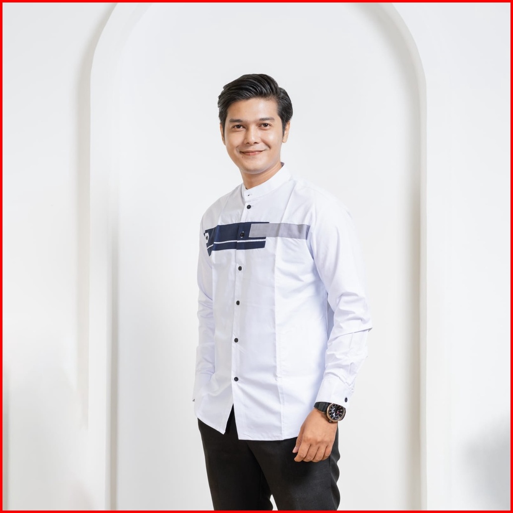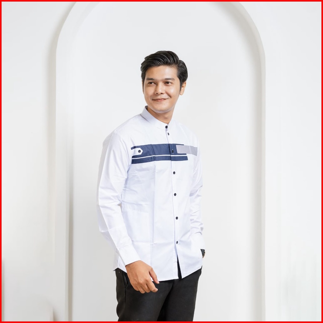 Elmoza - Asakhi Baju Koko Pria Lengan Panjang Motif Yordan Series Koko Muslim Hadroh Azzahir Warna Putih Navy M L Xl