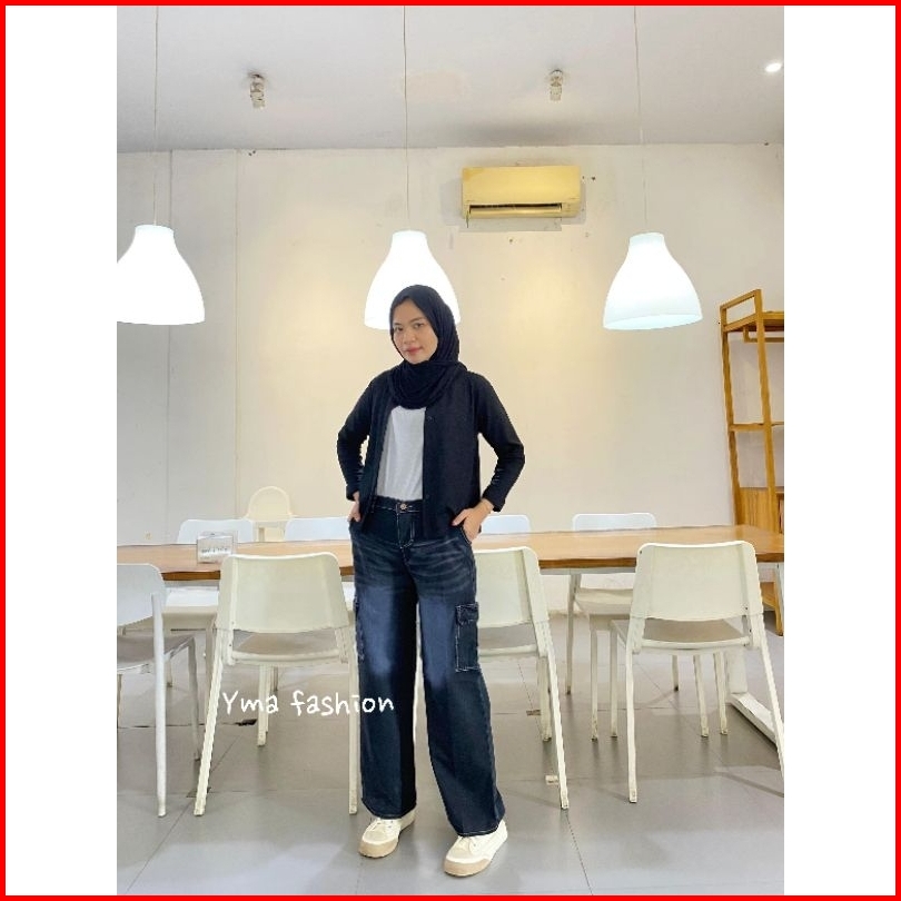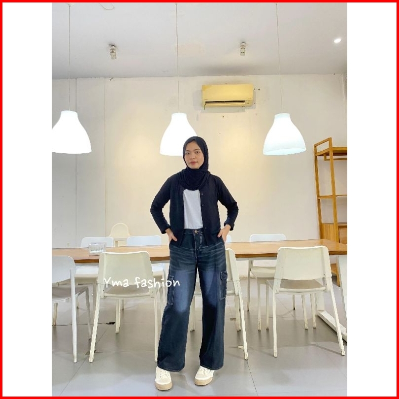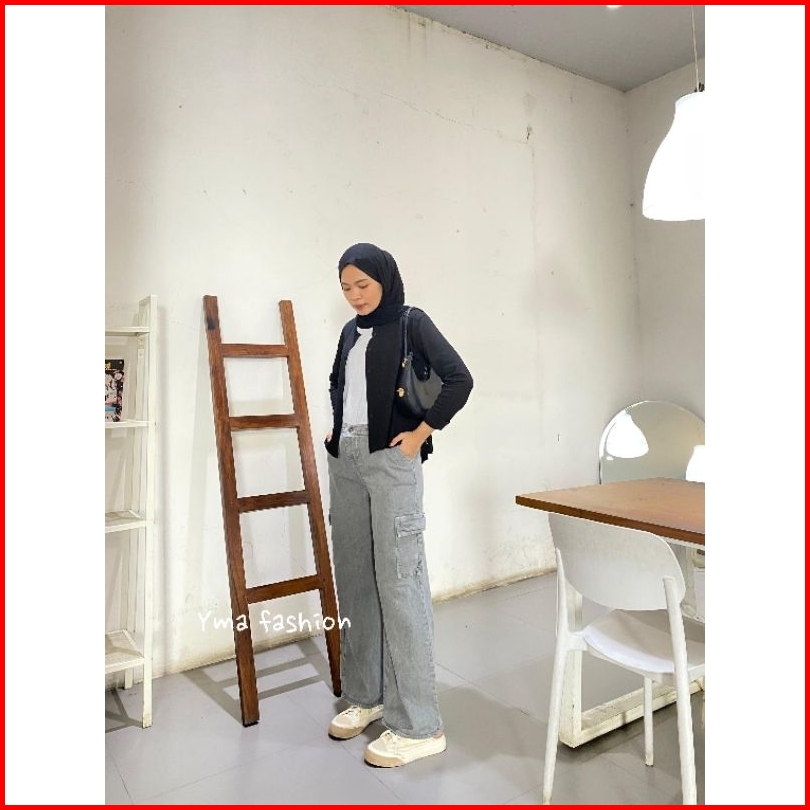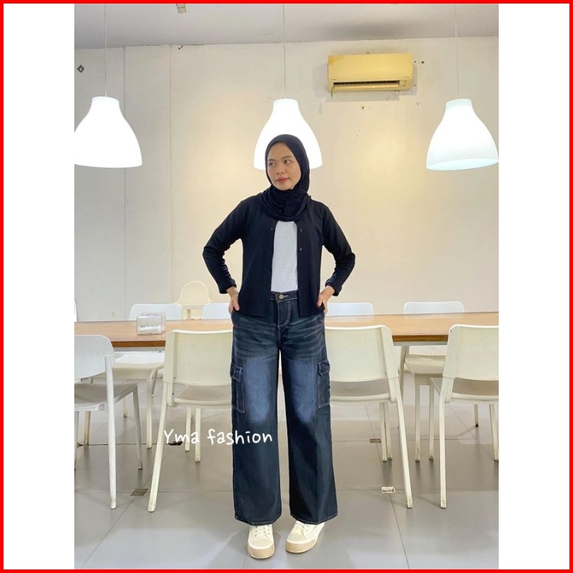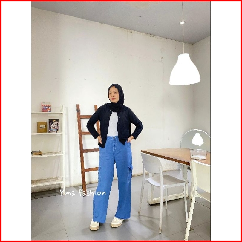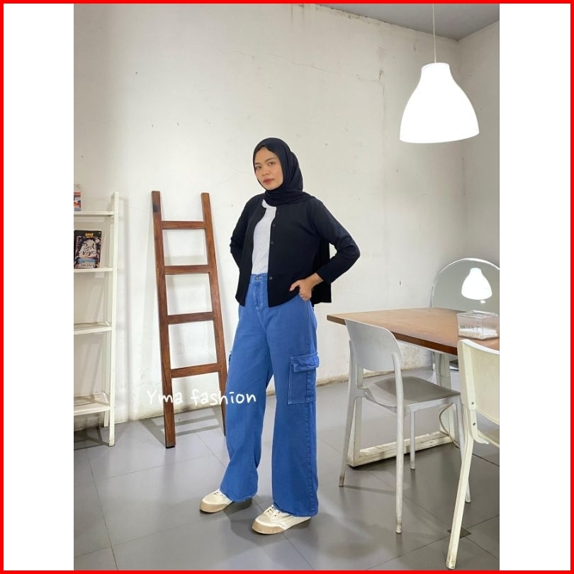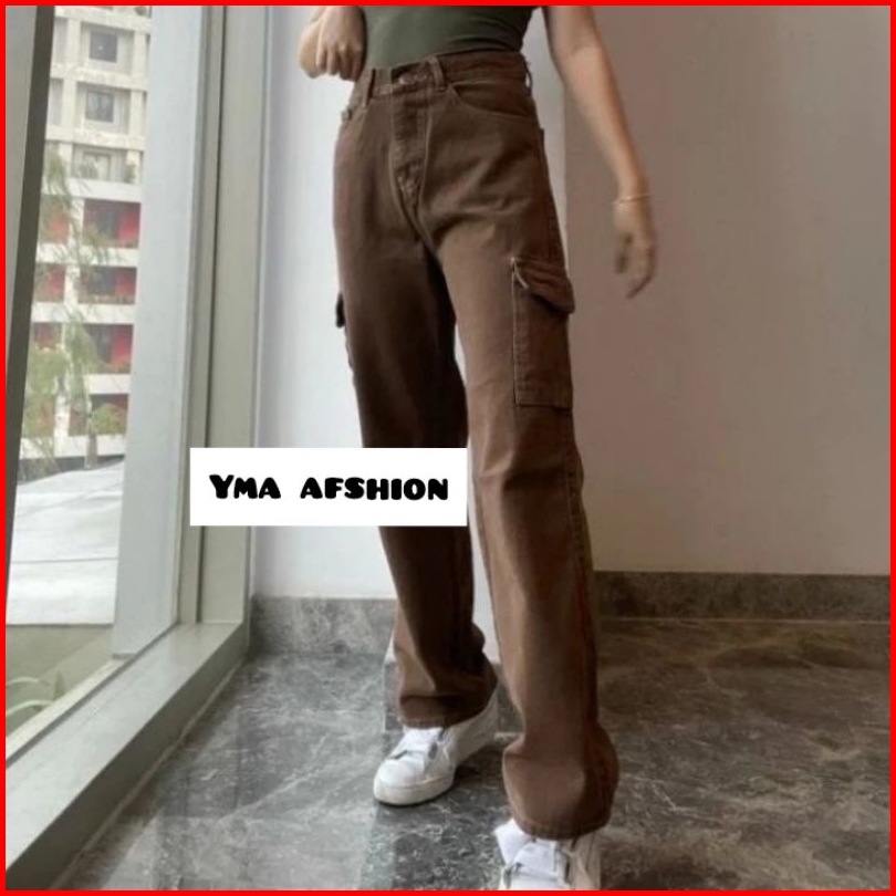 Celana Jeans Cargo Highwaist Celana Cargo Wanita - Celana Cargo Wisker Retro