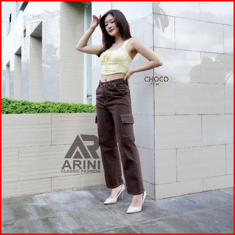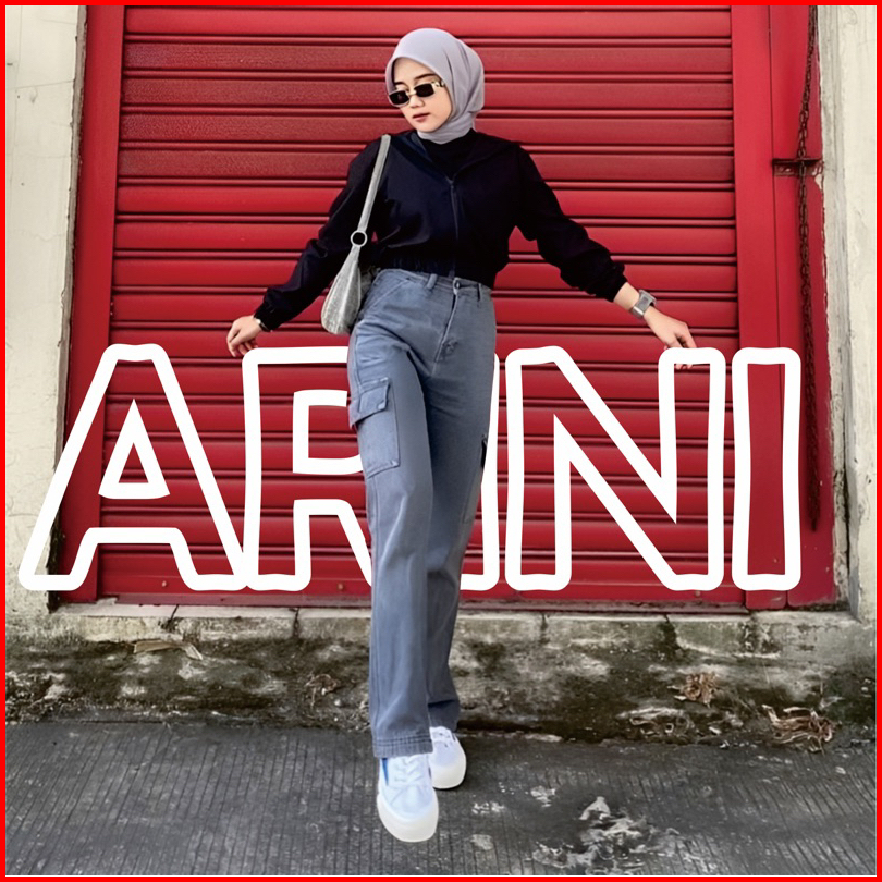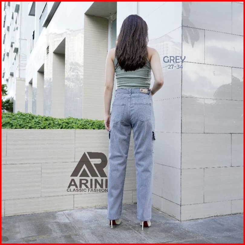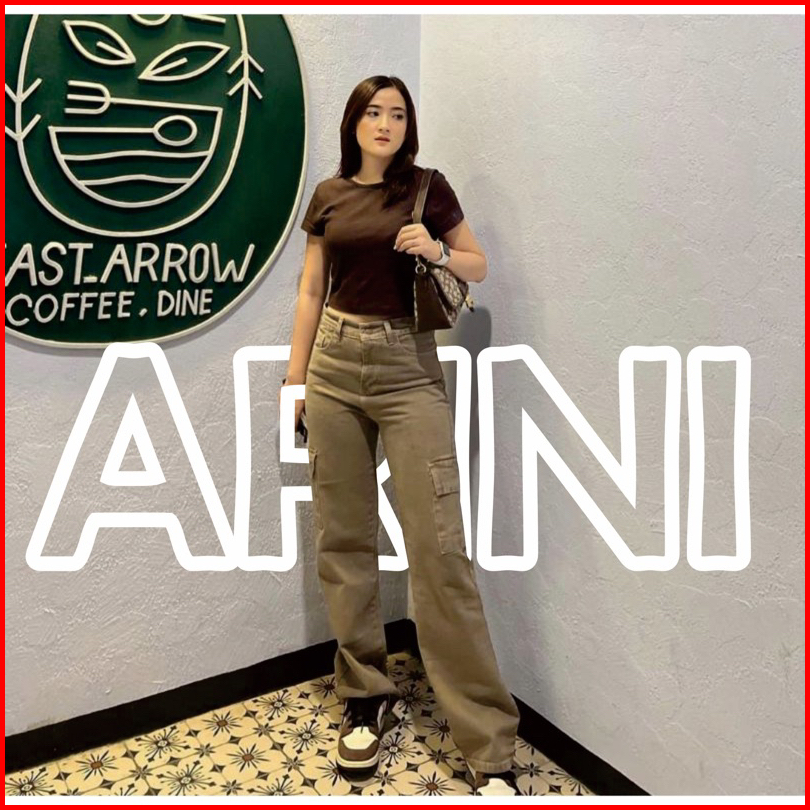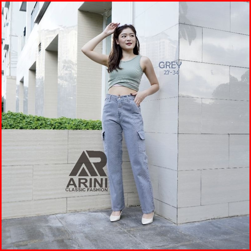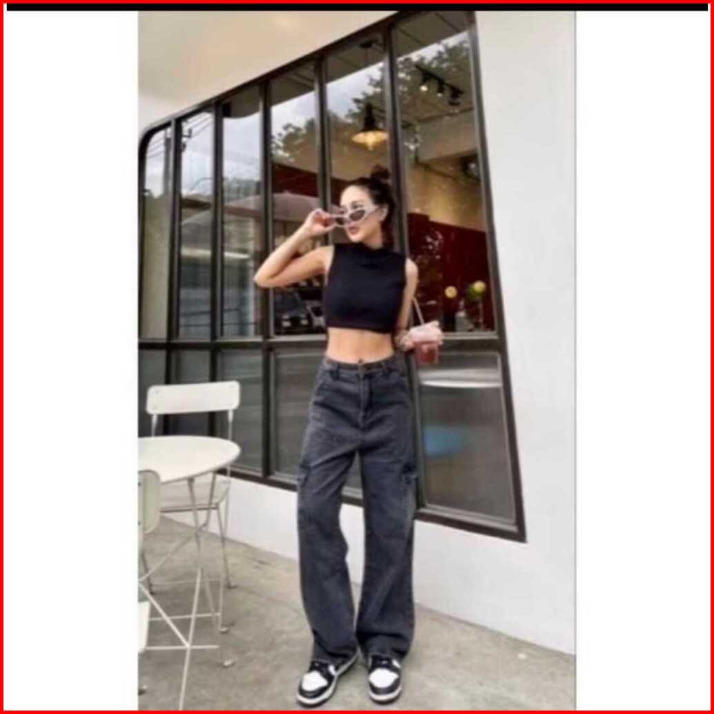 Highwaist Cargo Loose Celana Jeans Kargo Kantong Samping