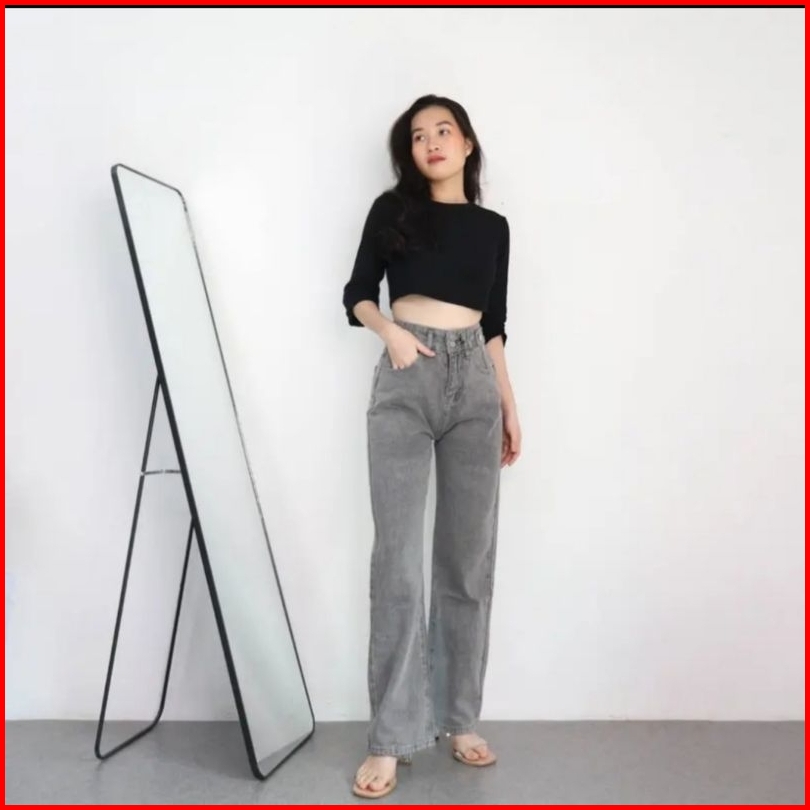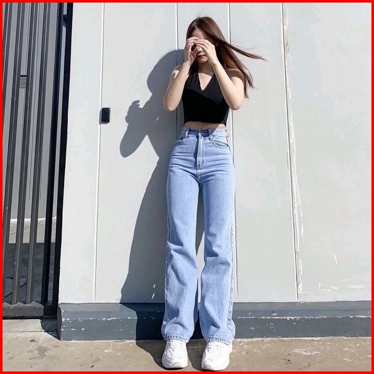 Higwaist Loose Jeans Premium Tebal Wide Leg Korean Style