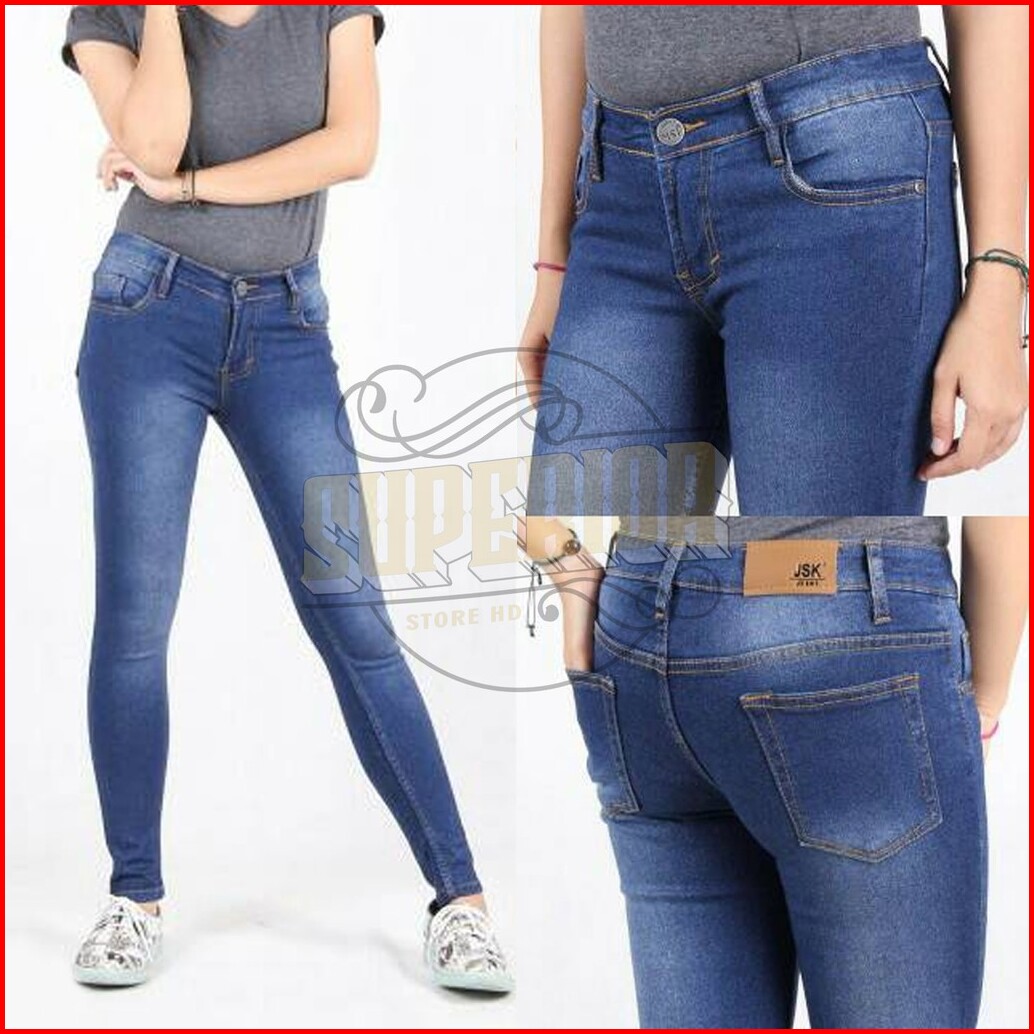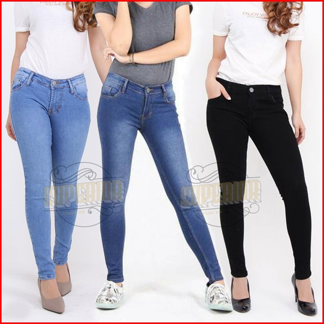 Celana Jeans Pensil Skinny Wanita Polos Ukuran 27 - 34