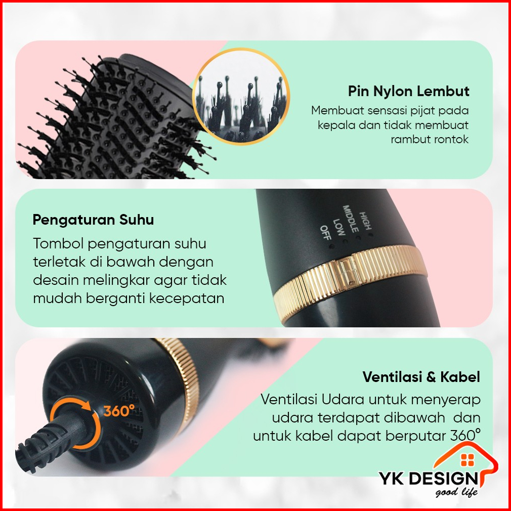 Yk Design Yk-163a One Step Brush Hair Dryer Special Color 4 In 1 Comb Dryer Straightener Hair Curler