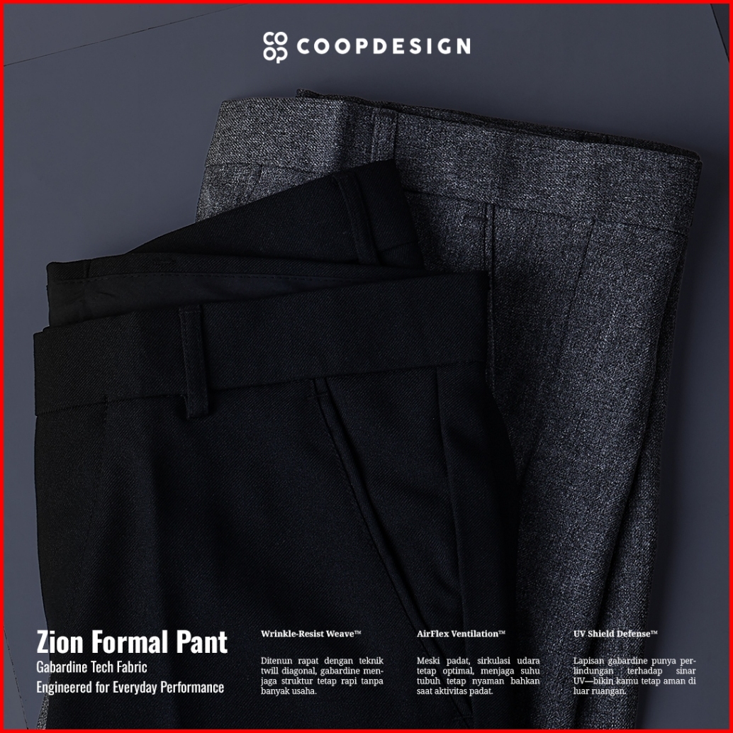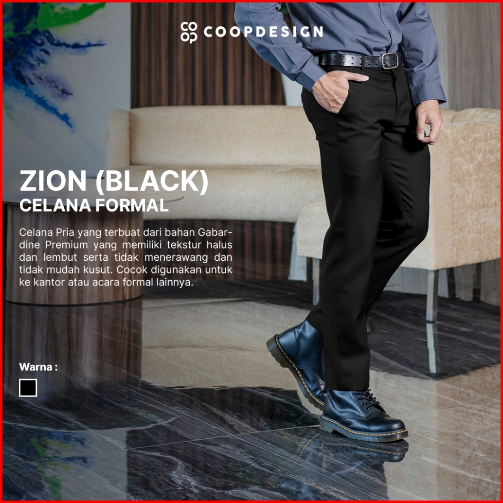 Coop Design - Zion Celana Bahan Kerja Panjang Formal Pria Trousers Pants Slimfit Black Hitam