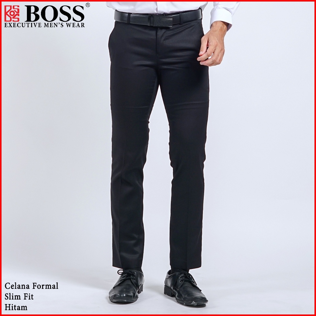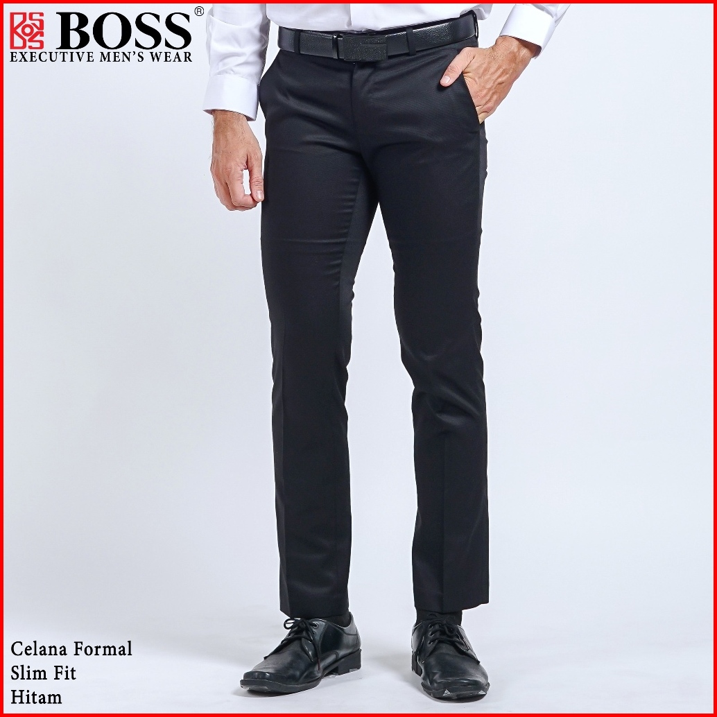 Boss Celana Panjang Pria Formal Slim Fit Ht Hitam
