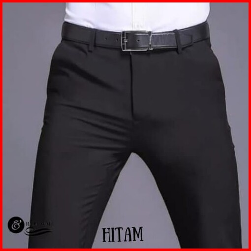 Celana Bahan Kerja Formal Kantor Panjang Hitam Dasar Pria Slimfit -