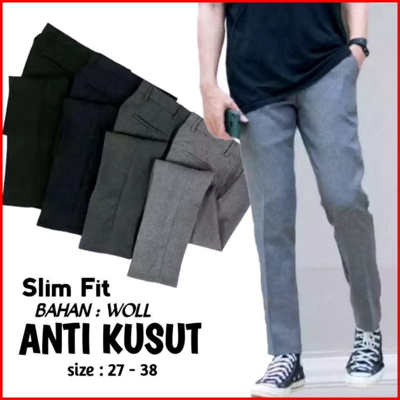 Aljadid0912.celana Panjang Sopan Anti Kusut Bahan Adem Mulur Katun Kantor Pria Bahan Formal Hitam Abu Tua Coklatua Abutu